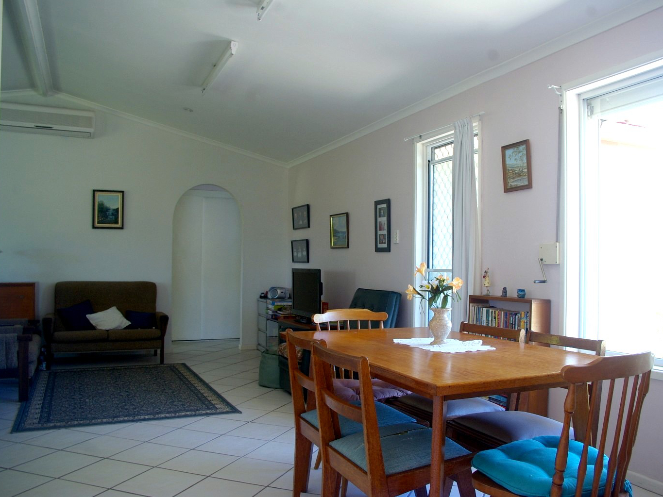 - Separate entry room leads to large air conditioned open plan kitchen / dining / living with cathedral ceiling.