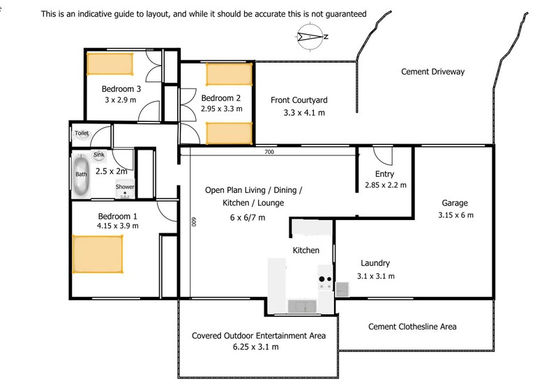- 6m long garage flows to 3x3m tiled laundry with internal house access.