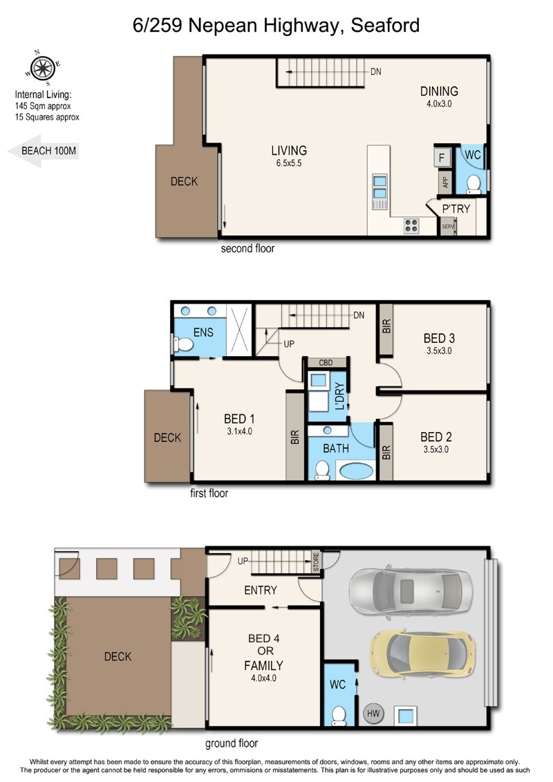 Well proportioned (19+squares) 3 storey, 4brm Townhouse with flexibility and rooms that the family can relax and entertain in, plus 2 balcony’s and a ground level timber decked alfresco area.