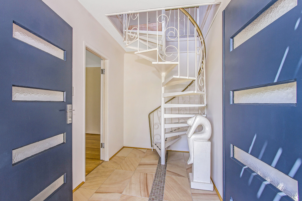 * Remote – controlled garage for two cars plus storage and off street parking for an additional vehicle