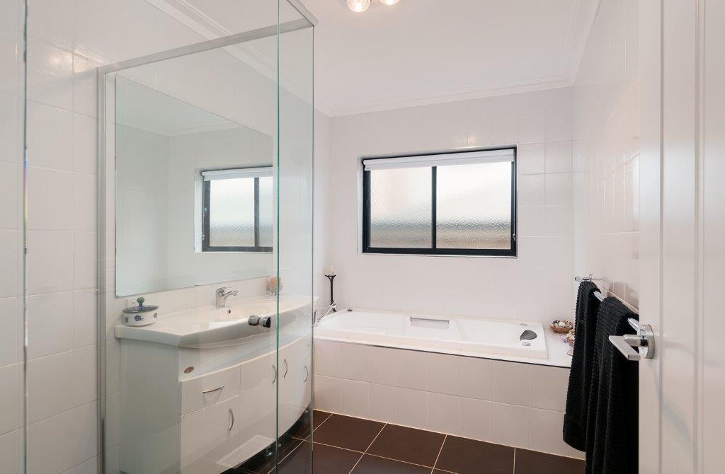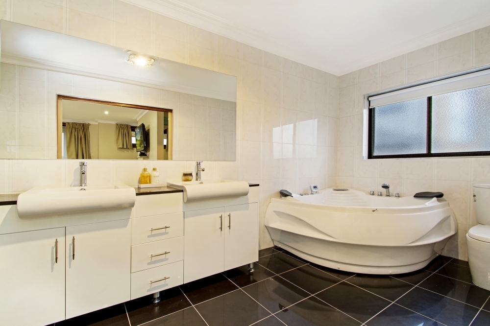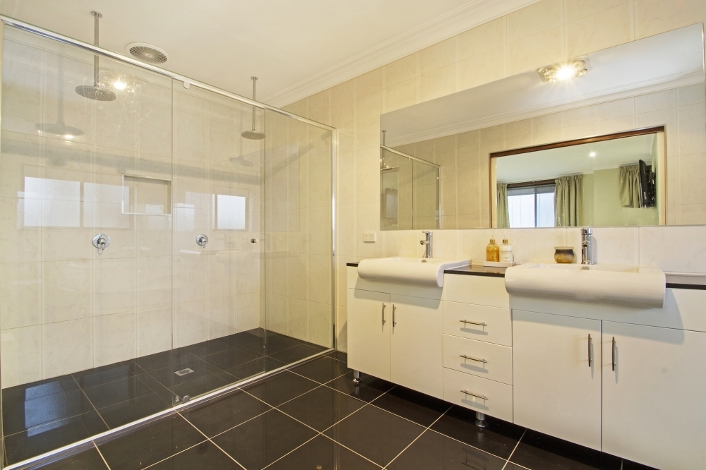 Spacious ensuite with double shower and corner spa complete with hot pump, built in radio and service access.