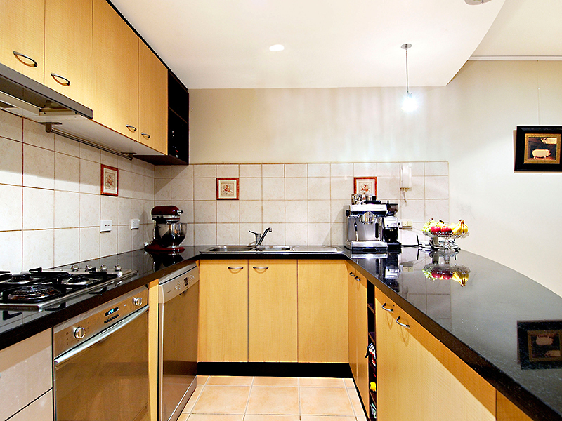 A modern kitchen with European appliances, including a Bosch water‑saving dishwasher, having plenty of storage and bench space ensures delight in your culinary journeys.