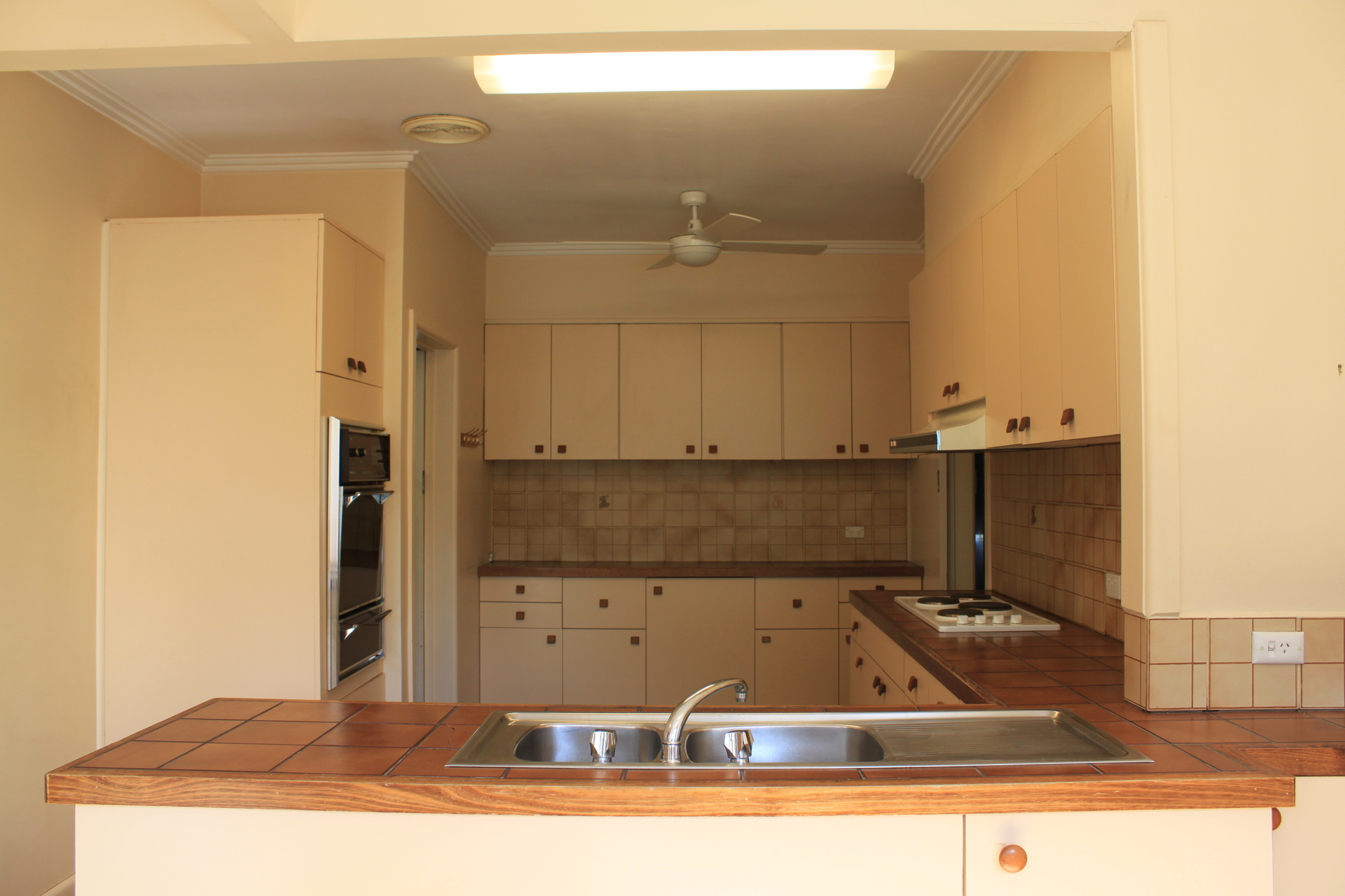 The kitchen is roomy with plenty of bench space and cupboard storage. It has a dishwasher, electric cooktop and electric oven. The kitchen, and the adjoining meals area, look out to the back garden across the back deck.