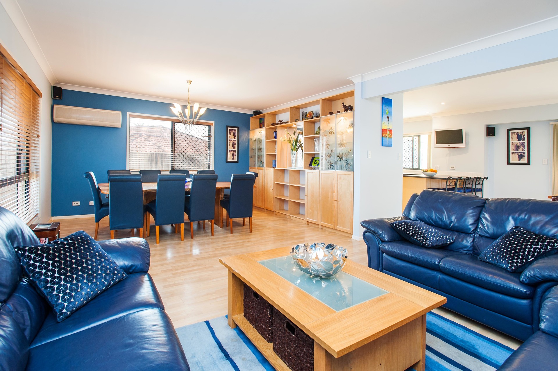 The open plan dining, lounge, entertainment and kitchen open up onto the spacious 10m x 4.5m paved and covered entertainment area. The back yard grassed area is large enough to allow the kids the space to play and included is the cubby house set in the back corner next to the 6m x 3m Colourbond shed. The garage has dual double electric doors enabling easy access to the back yard and shed from the front of the house.
