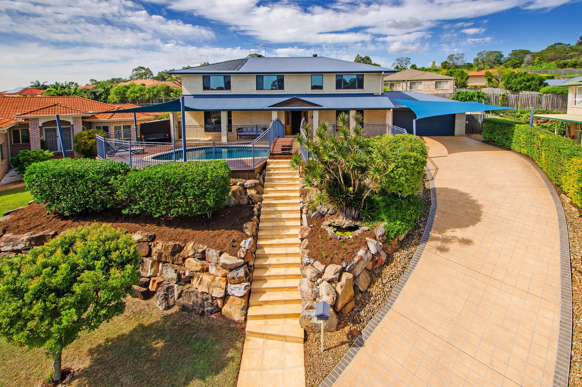 Set high on the eastern side of Park View Rise Estate is this imposing 2 storey brick home with an....AWESOME entrance! How many homes can boast having a bridge over a pool leading to their front door? This one can!