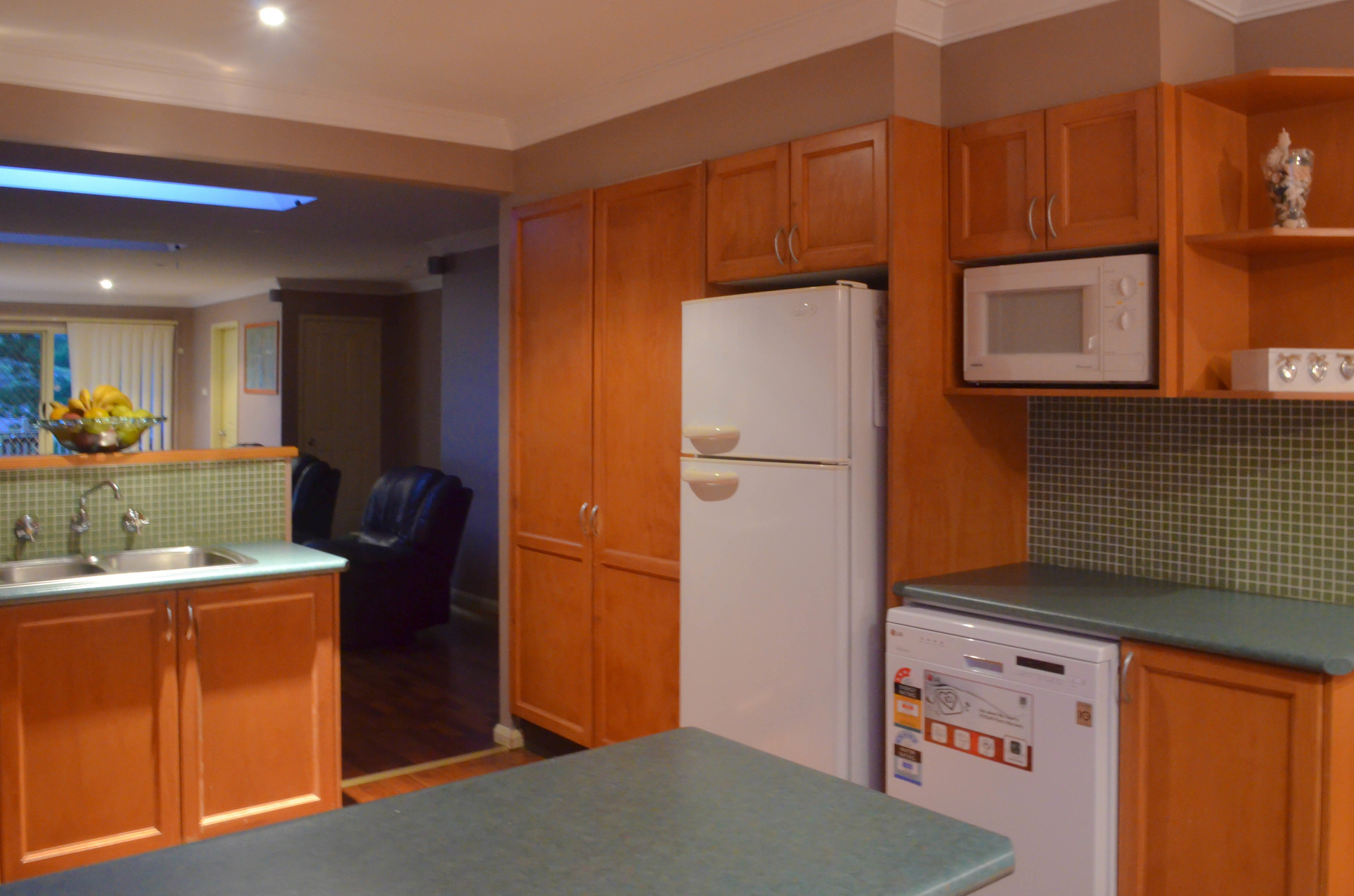The timber kitchen features a large electric oven and gas cook top, large pantry and near new LG dishwasher.
