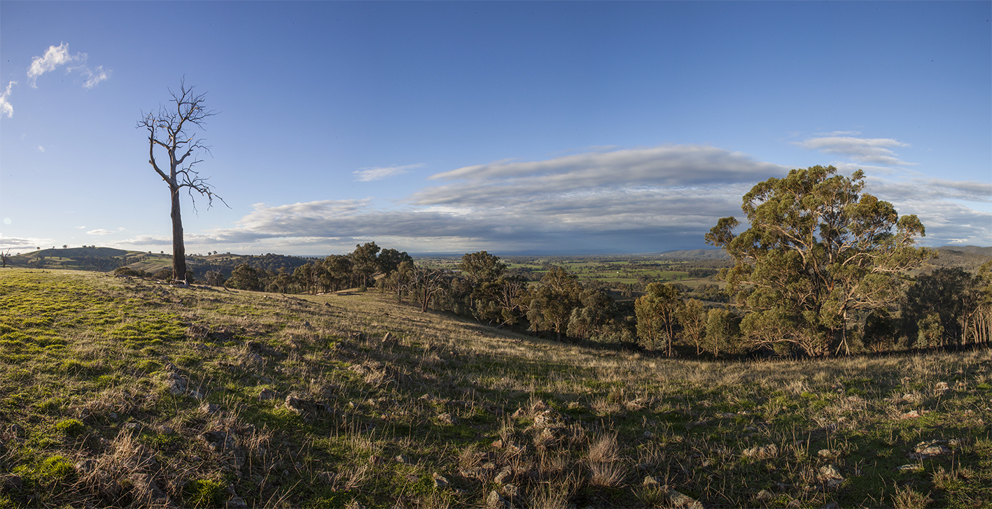 Approx 120 ha 20 minutes south of Wangaratta with undulating hills, spectacular views across the King Valley,. fertile river flats and a permanent fishing stream (and swimming hole) in your front yard. Excellent water supply from both the creek with a 2 meg DS license and from a reliable spring on the hill above the house.