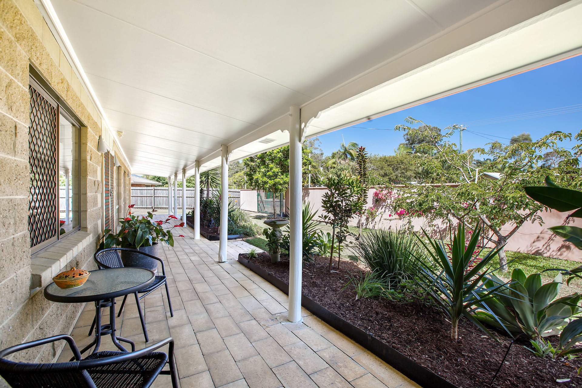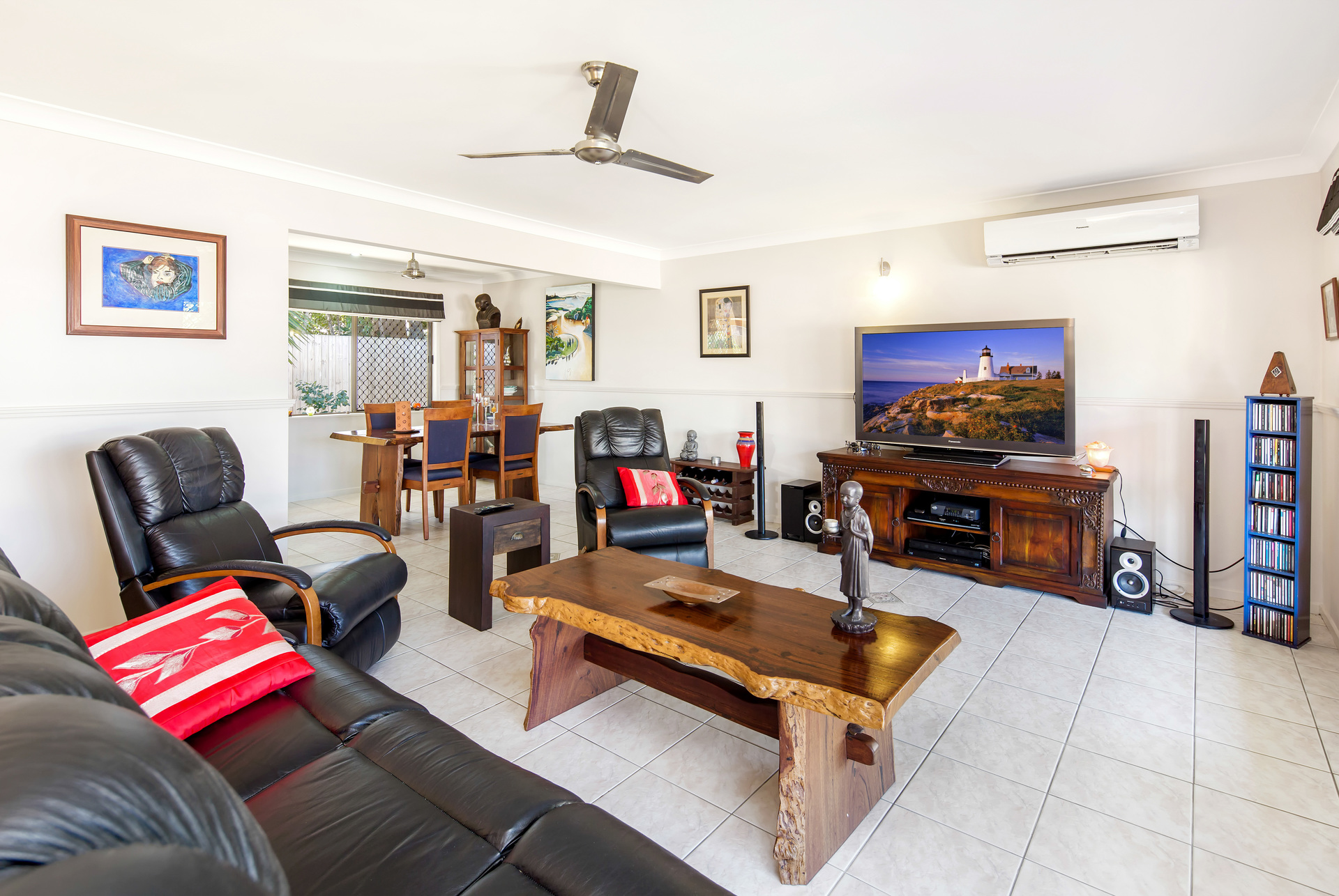 The open plan living and dining areas open out onto a pergola. The three good sized bedrooms all have ceiling fans while the main has a split system air conditioner.