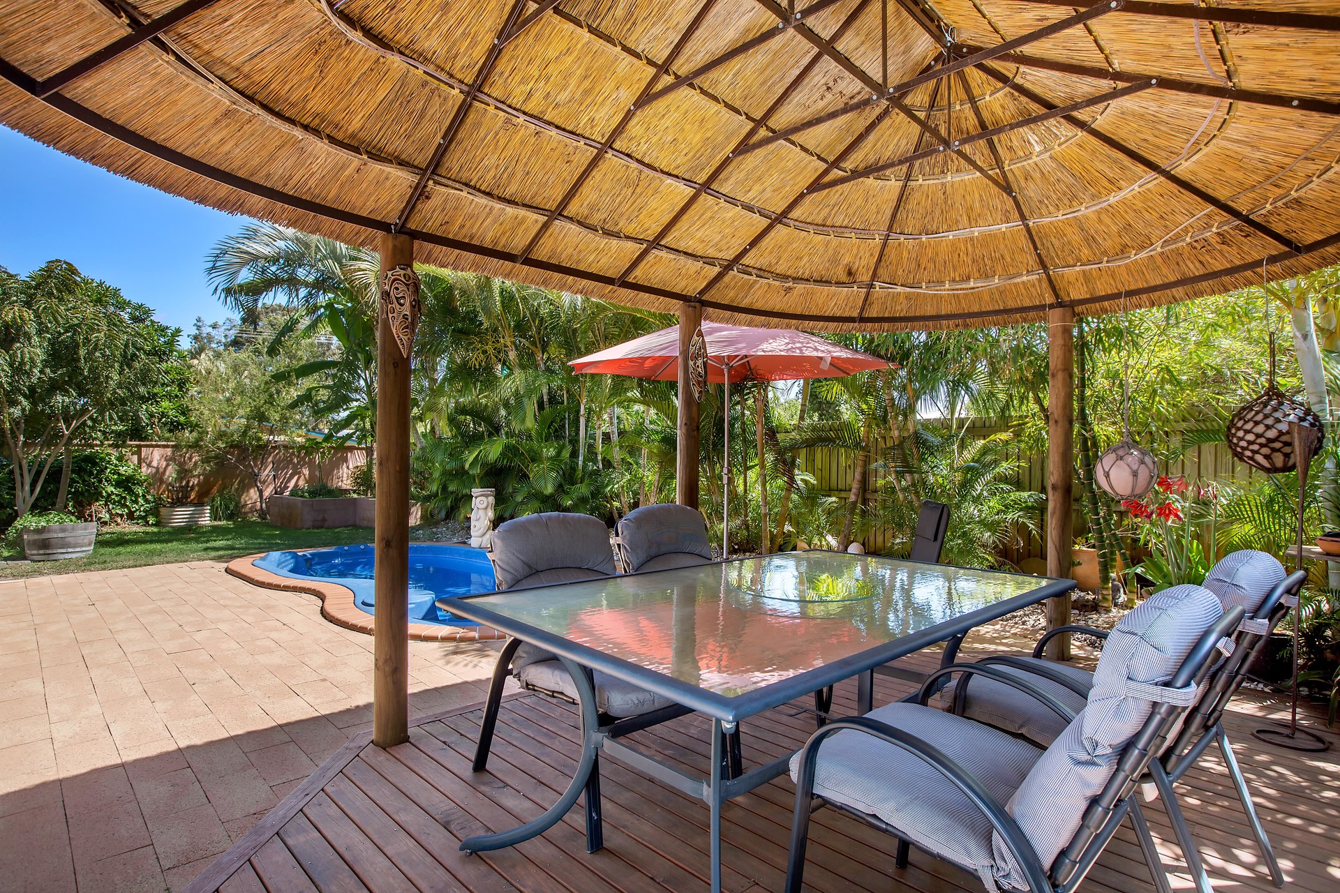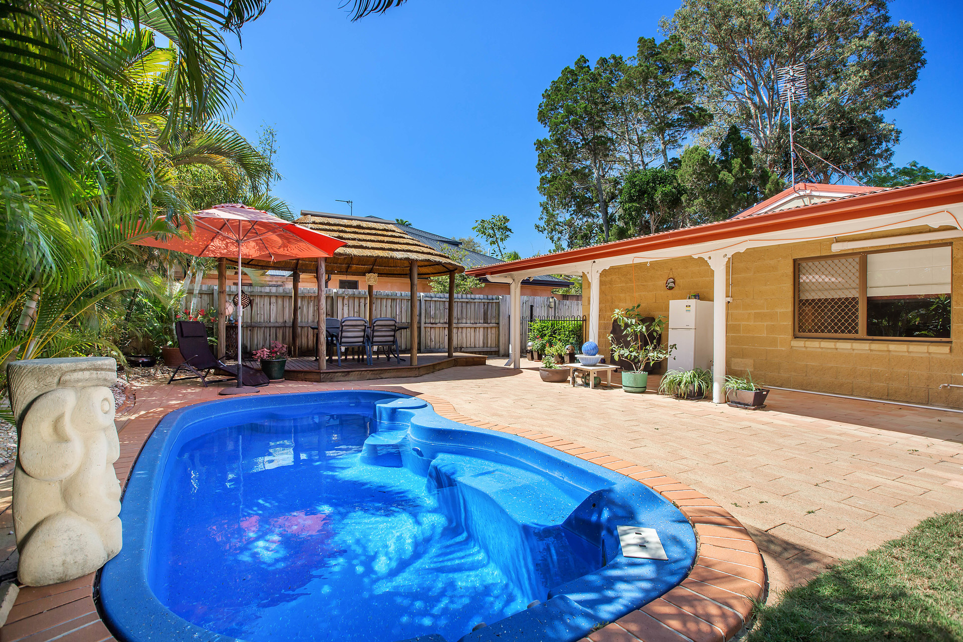 Be delighted by the tropical outdoor setting perfect for entertaining, featuring a plunge pool spa, ideal for cooling off in the summer months and a large well built Balinese style gazebo. The garden is easily maintained and watered by a bore and pump system. There is a 3kw solar power system added to the home. Electric security gate and fencing are also featured. Under roof garage would be easily converted into fourth bedroom.