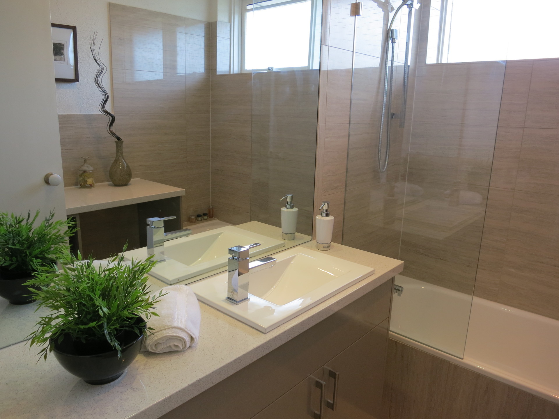 The central bathroom is stylishly tiled and has an attractive bathroom vanity together with a convenient laundry facility providing great storage. There is a separate toilet.