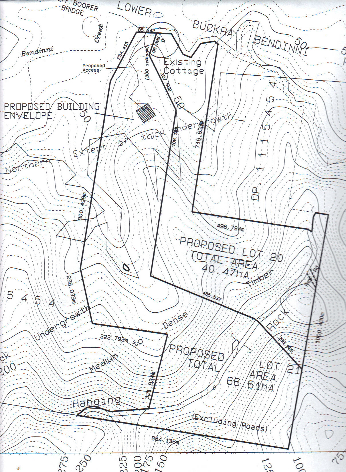 - The property is lot 21 on the attached plan. On the western side of 883 Lower Buckrabendinni Road.