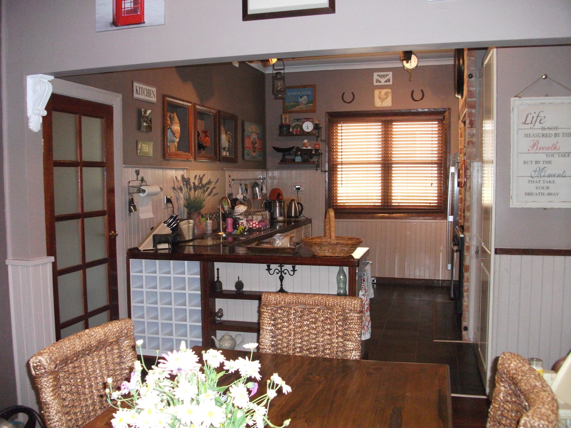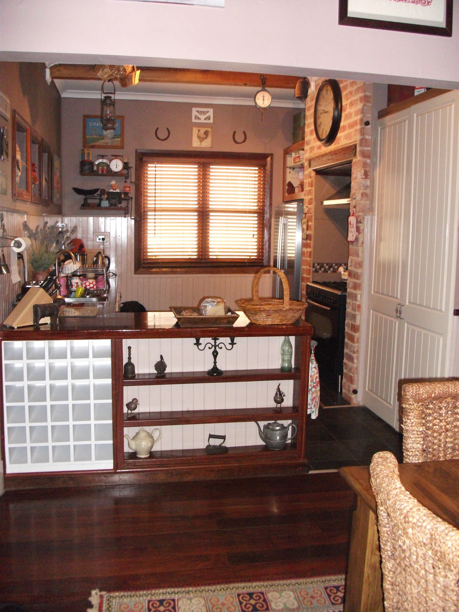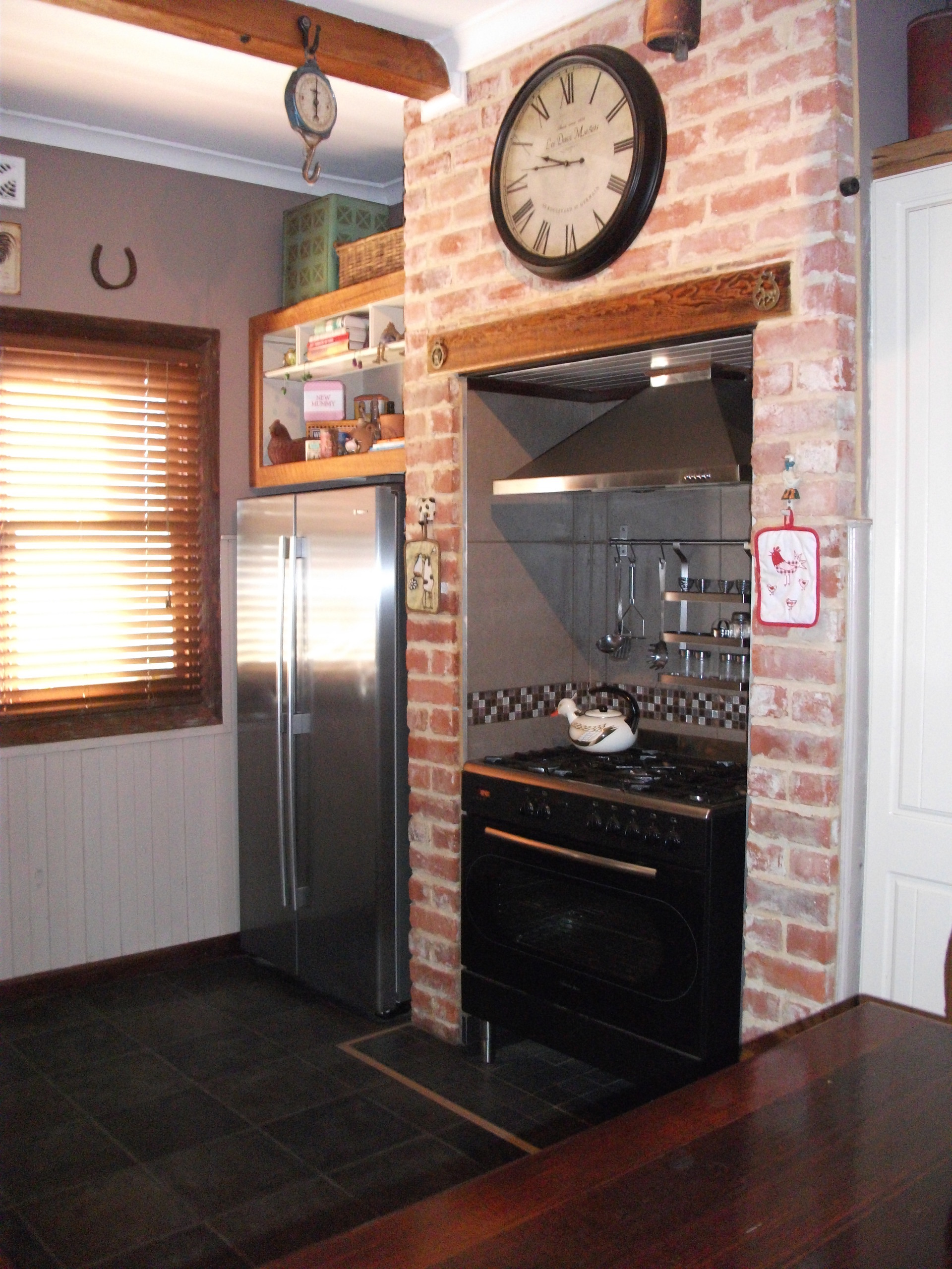 This home features a lovely sized kitchen, which boasts a great oven with a five burner stove top. Plenty of work space provided and still leaving enough room for that side-by-side refrigerator. Ceiling beams and exposed brick work all add to that country kitchen feel.