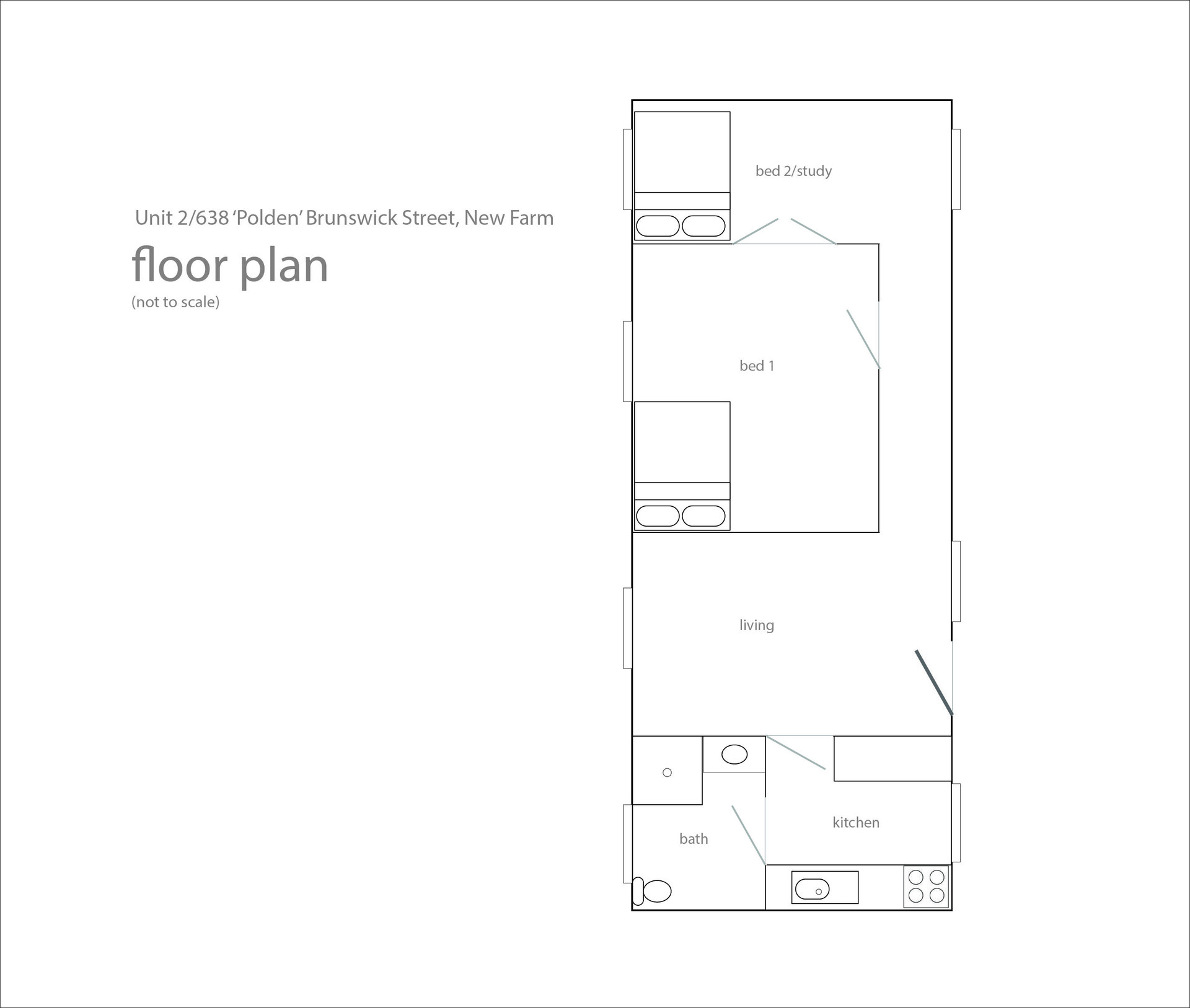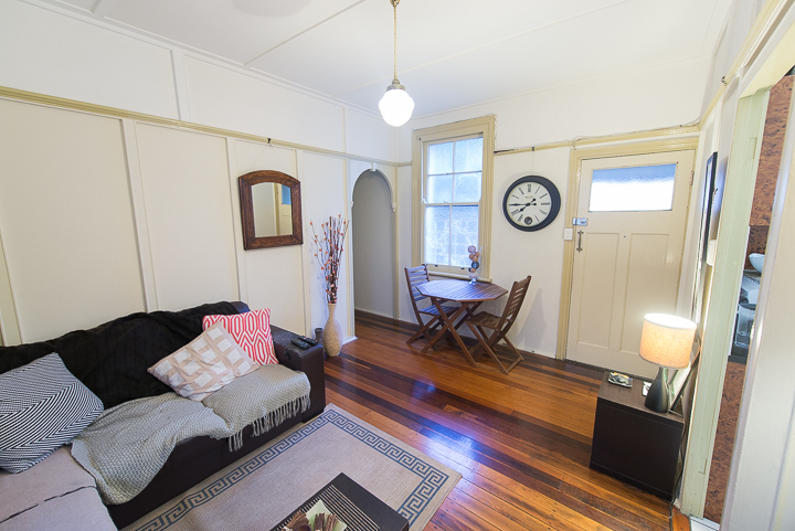 Number 2 is a spacious 63 sqm ground level apartment with an off street entrance. It is comprised of a large master bedroom and smaller second bedroom (or large study), living room and good sized separate kitchen and bathroom. It is blessed with high ceilings and timber floors. Original fixtures such as large timber sash windows and picture rails add to its undeniable charm, features that simply cant be found in a modern apartment.