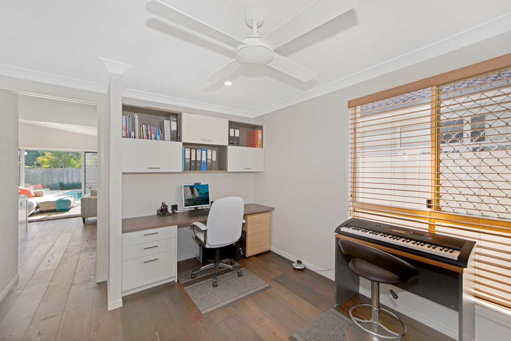 • Large office/Study - with 2 built-in desk spaces and modern shelving