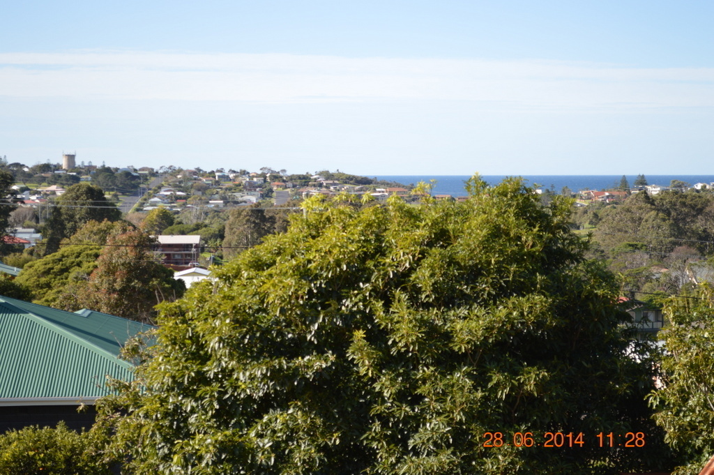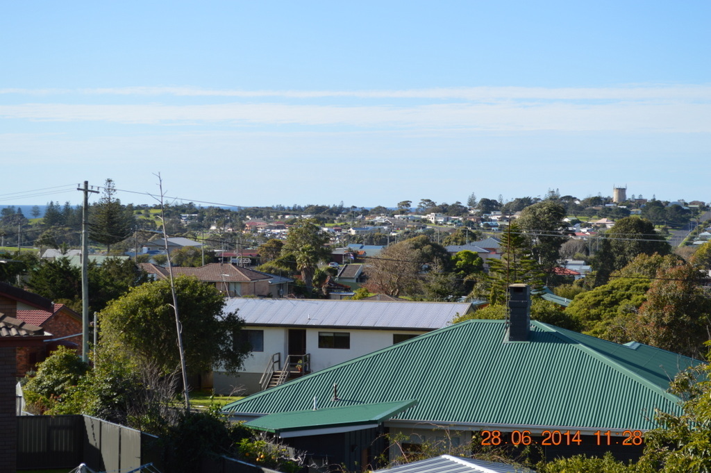 Northerly aspect with scenic views east and southeast across Bermagui town, north and northeast up the coast to Montague Island 23 klms north.