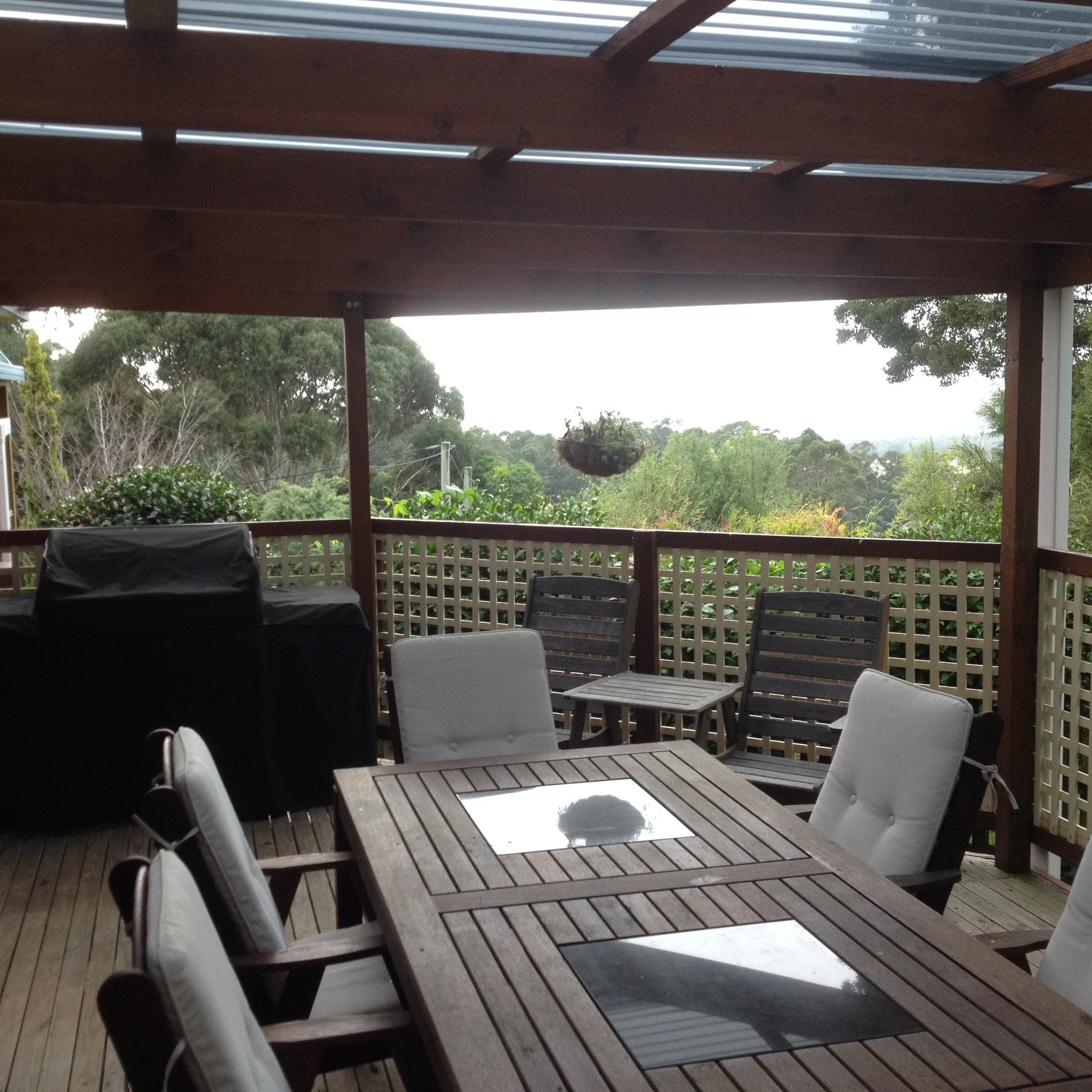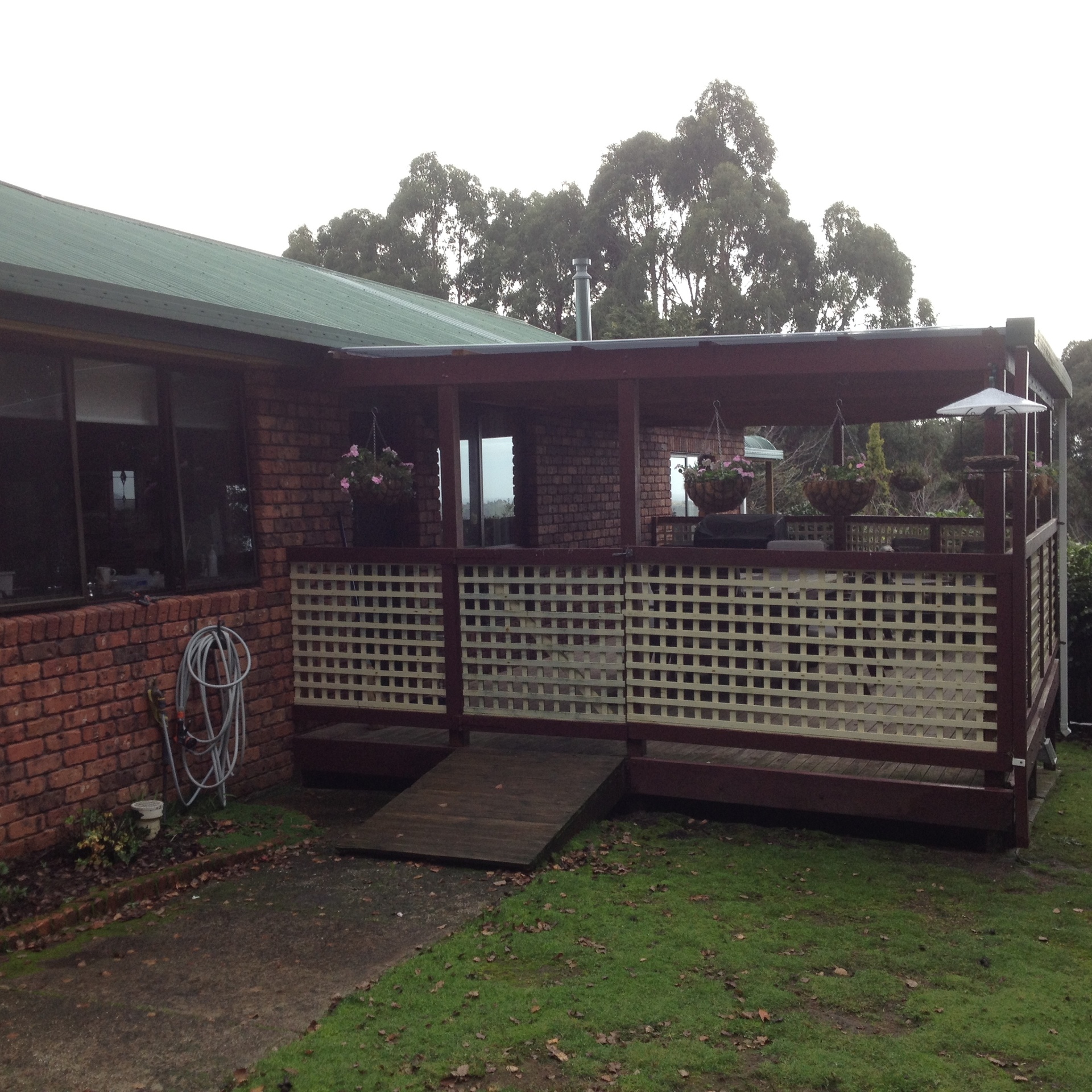 A large deck with a new acrylic tinted roof, accessed from the kitchen / dining area also offers expansive city, river and Bass Strait views.