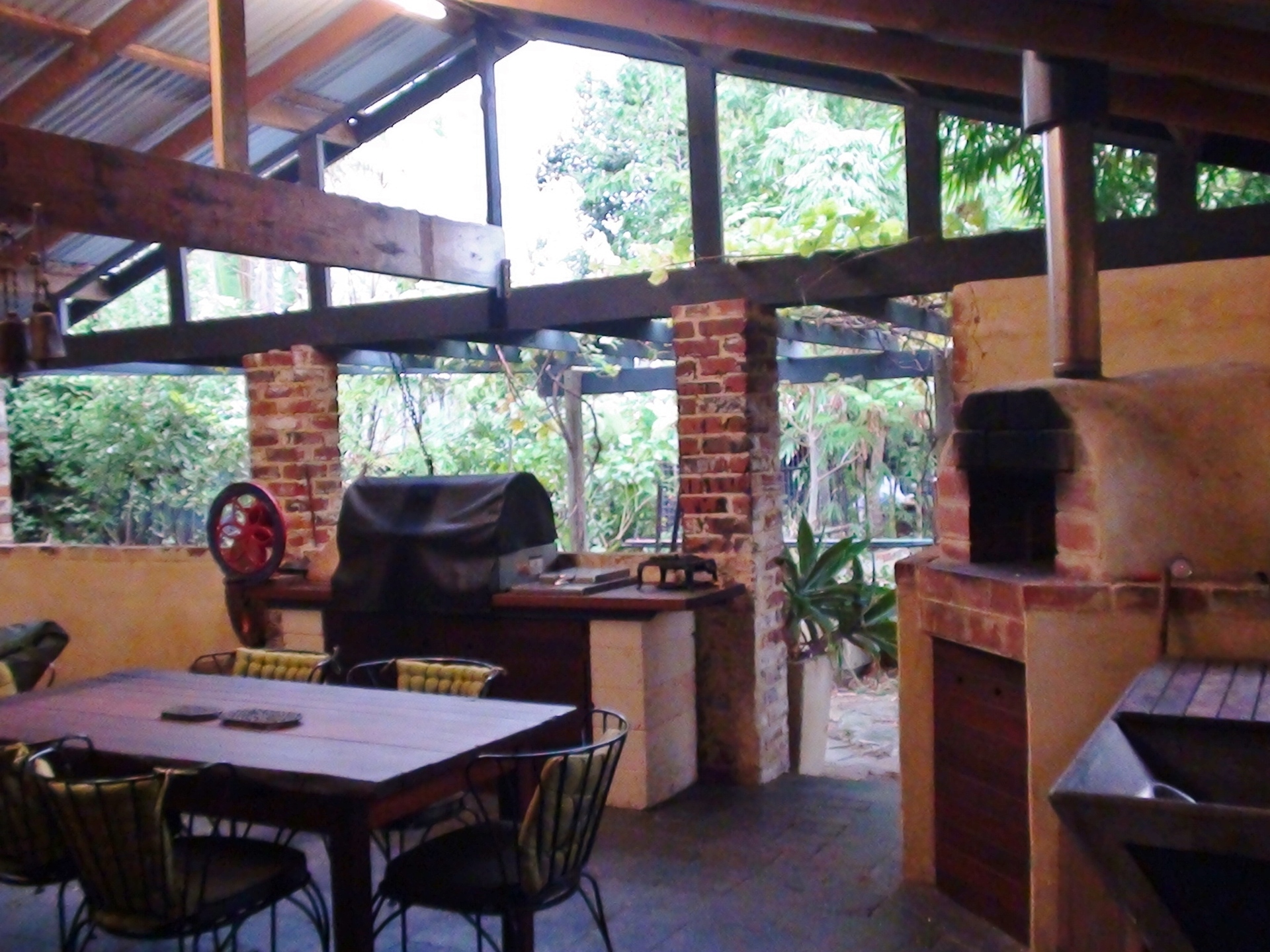 -Pizza oven, gas BBQ, wok burner, plumbed antique trough in alfresco area.