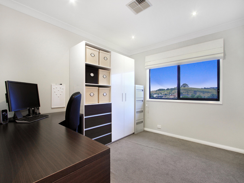 • 4 generously sized bedrooms (king size master suite and 3 double bedrooms) each with fitted robes, electric window shutters and stunning rural outlook. There is also a separate study nook/media centre. The master suite has an ensuite (twin showers and vanities) and a walk in robe that should have its own postcode!