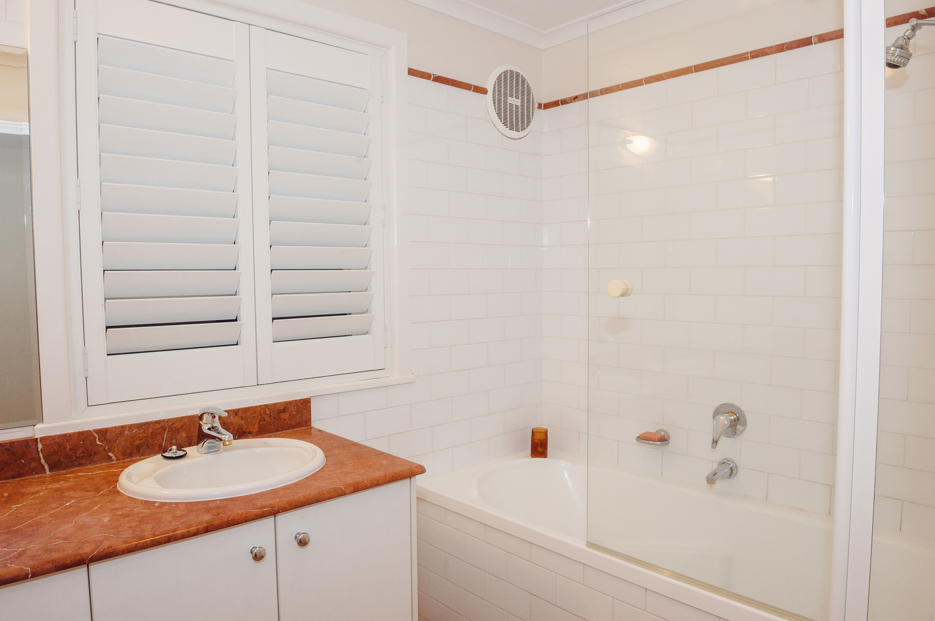-Modern bathroom with additional outside toilet which is ideal for entertaining.