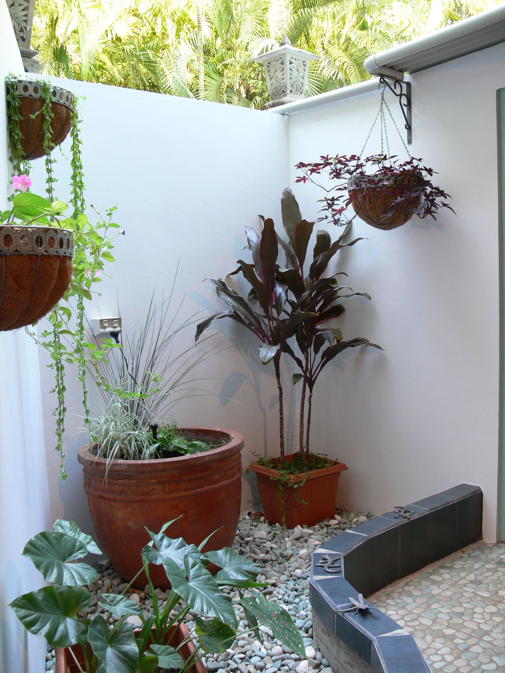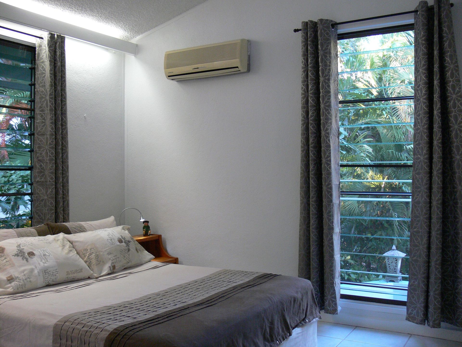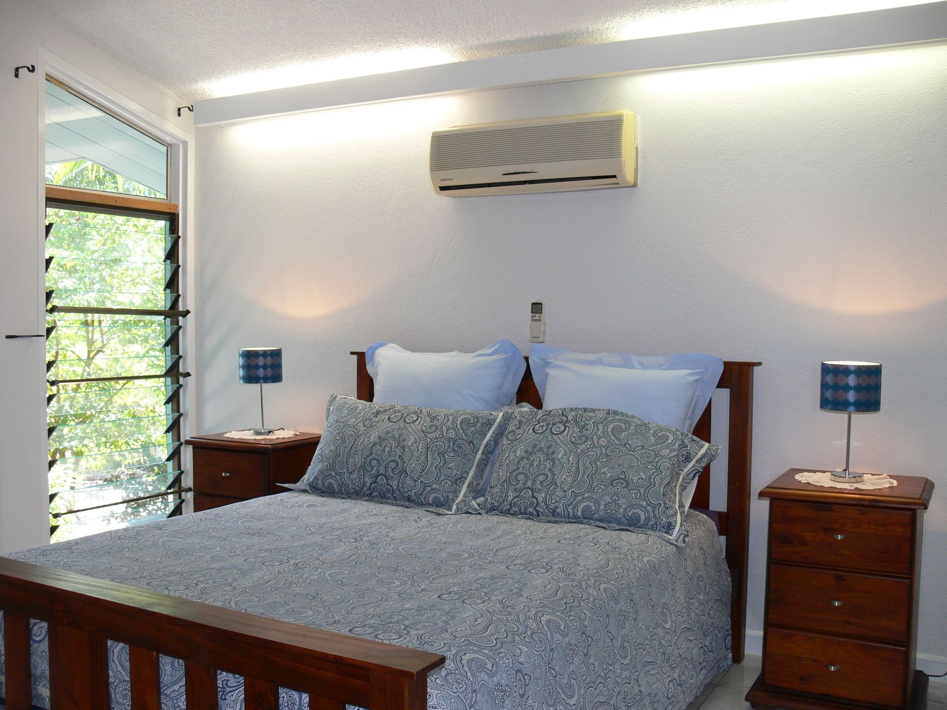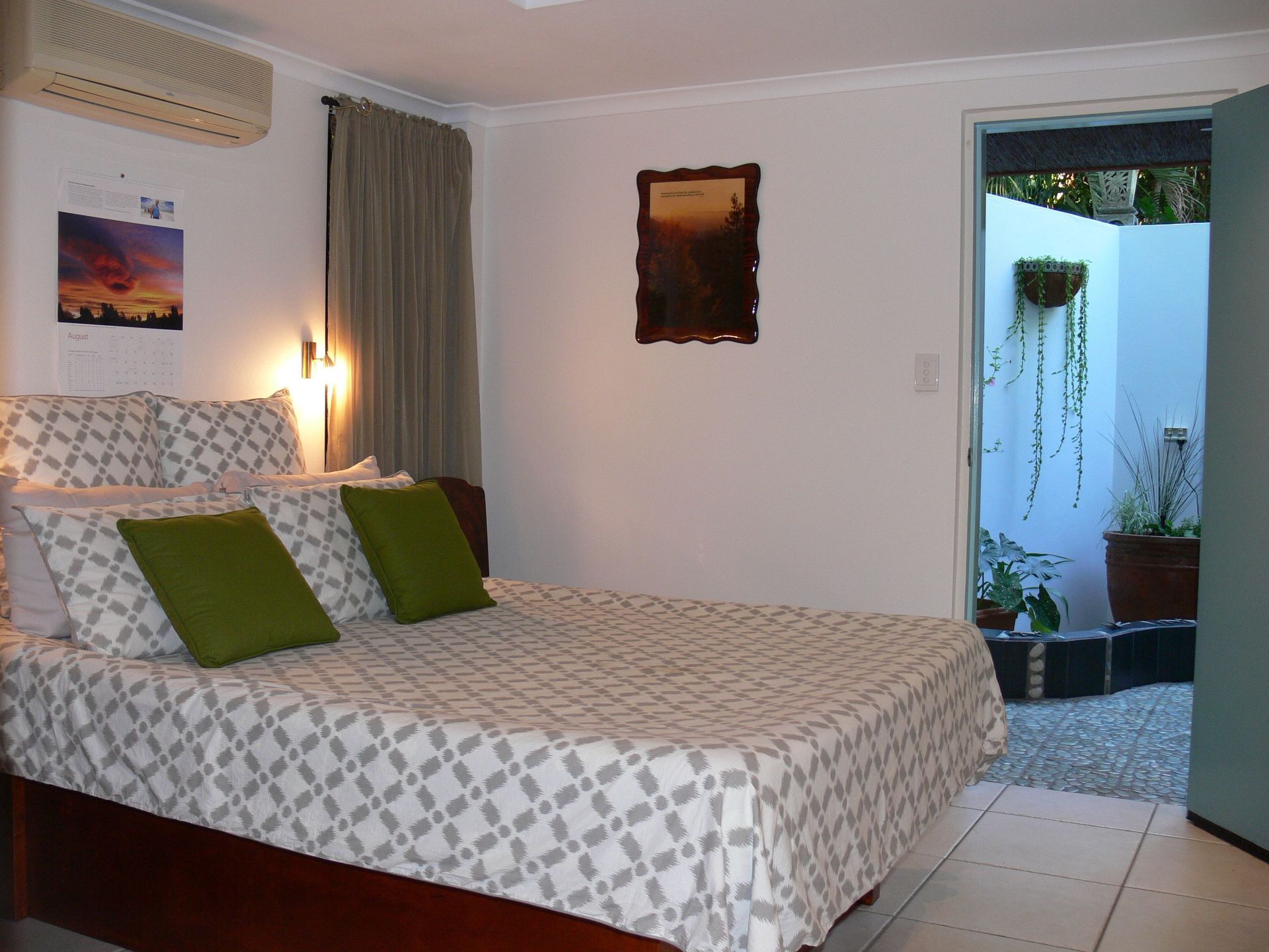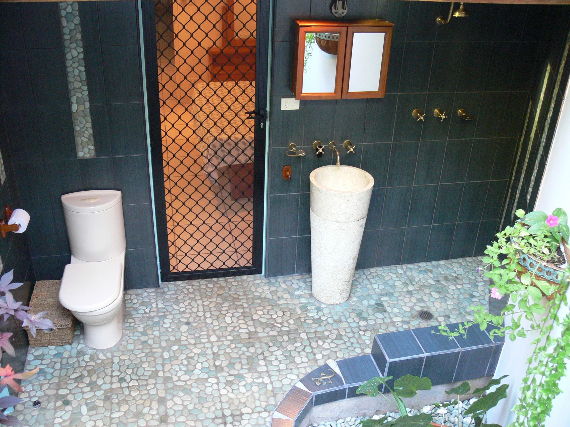 On the lower level is the main air- conditioned bedroom, with a walk in wardrobe/dressing room, and an outdoor ‘Bali’ style ensuite, with a small atrium.
