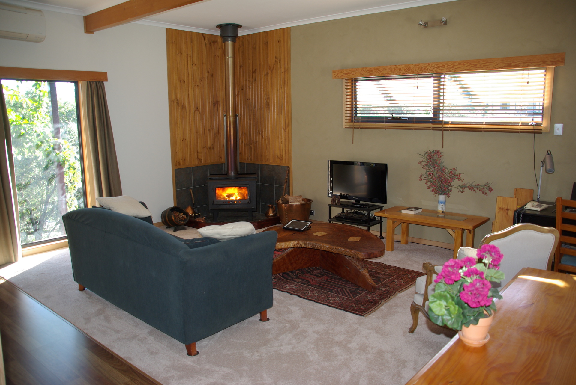 Wood stove, ducted heat transfer system and two split system reverse cycle air conditioners to keep you toasty warm in winter and cool in summer.