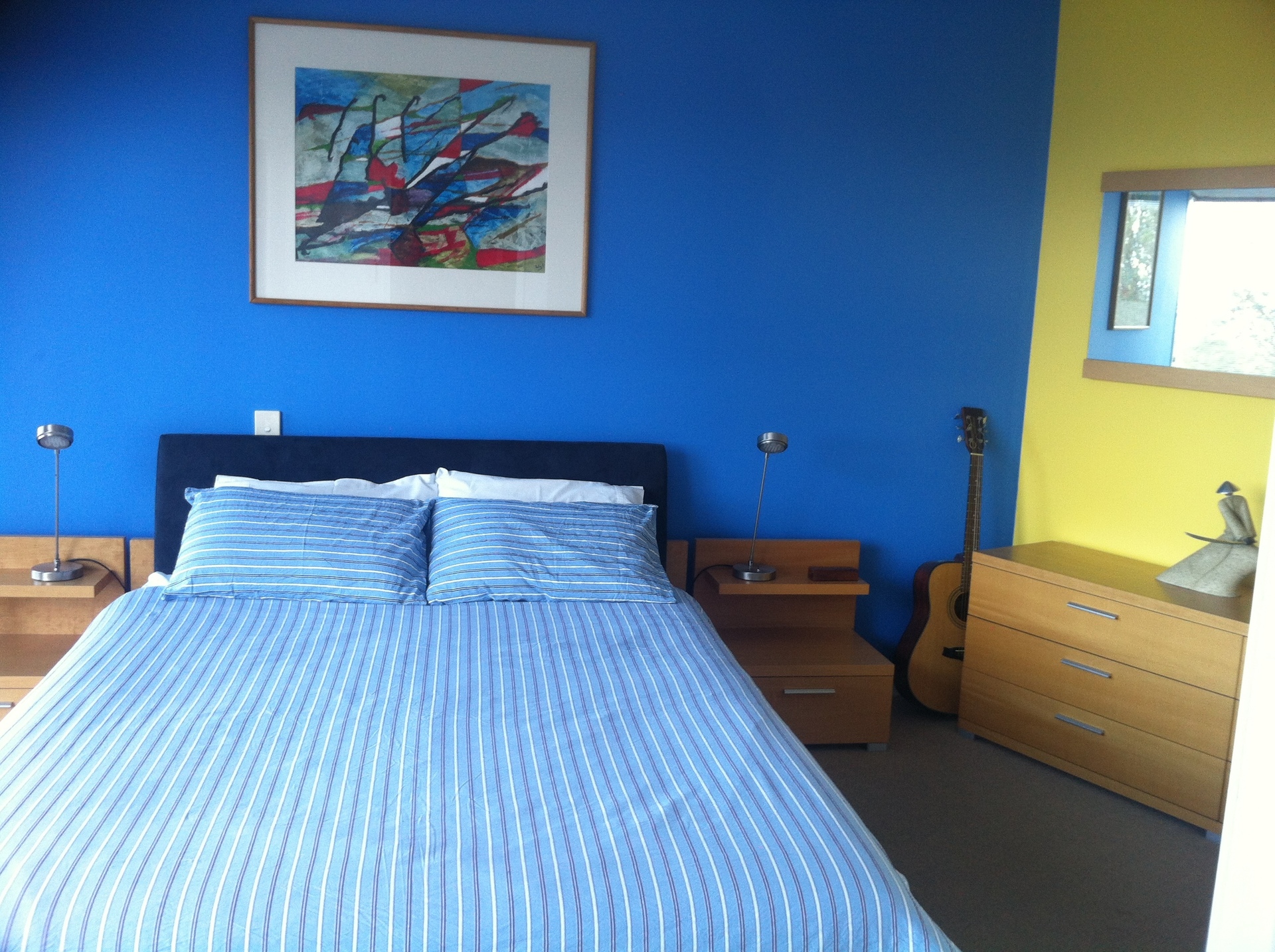 Two bedrooms, large main with walk-in wardrobe area and small private deck, second with built-ins;
