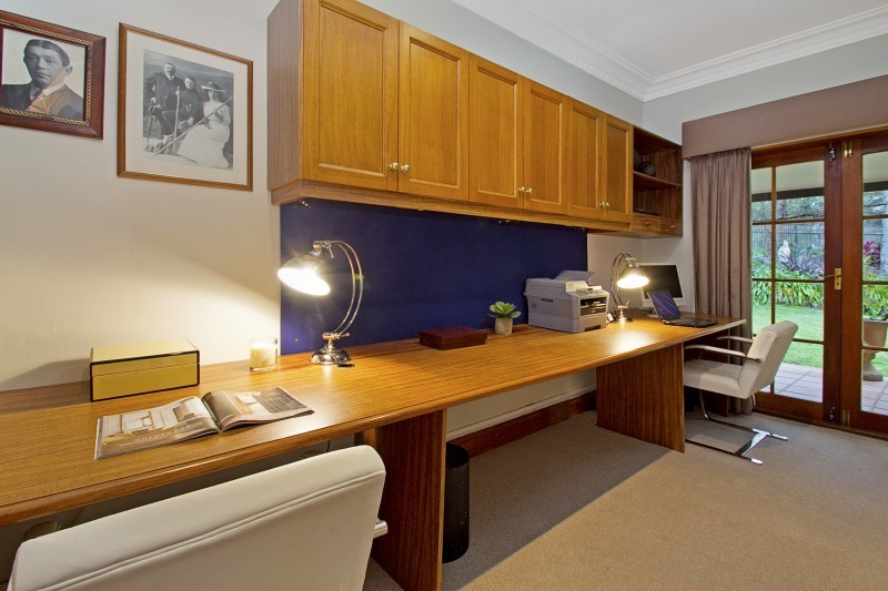 There is separate lounge room featuring an open fire place adjacent to an efficiently designed study/office.