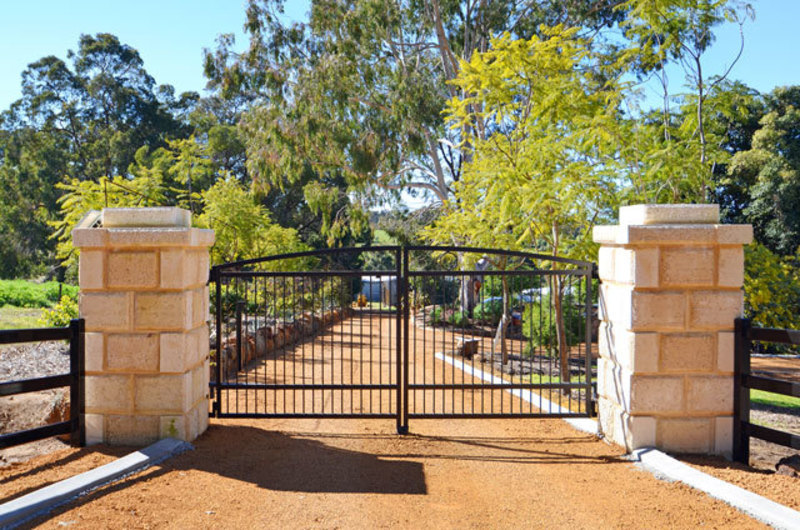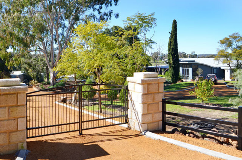 Entry to "Colly Blue" Homestead is via huge steel automatic Security gates and a sweeping, kerbed, most attractive red gravel driveway. The main residence or The Homestead is a "one only" and was built in 2006 by an award winning architect with all framing built entirely of hot dipped curved steel beams and topped with curved roofing. The home features three large bedrooms, two bathrooms and three lavatories, a huge lounge dining kitchen with soaring 6 metre curved and soundproofing ceilings, and natural stone Travertine flooring. The "New York Style" kitchen was designed and built in Italy by Snaidero and all appliances are top of the range by Kleenmaid Kitchens. This main living room is totally glassed to feel part of the vast paved terrace with pool, bar, outdoor marble dining table and chairs, and all looking over the property and down the Chittering valley.