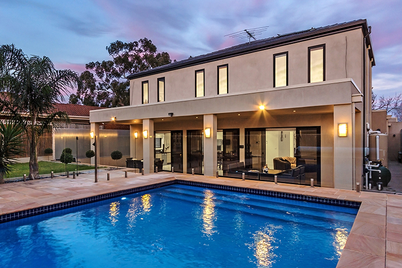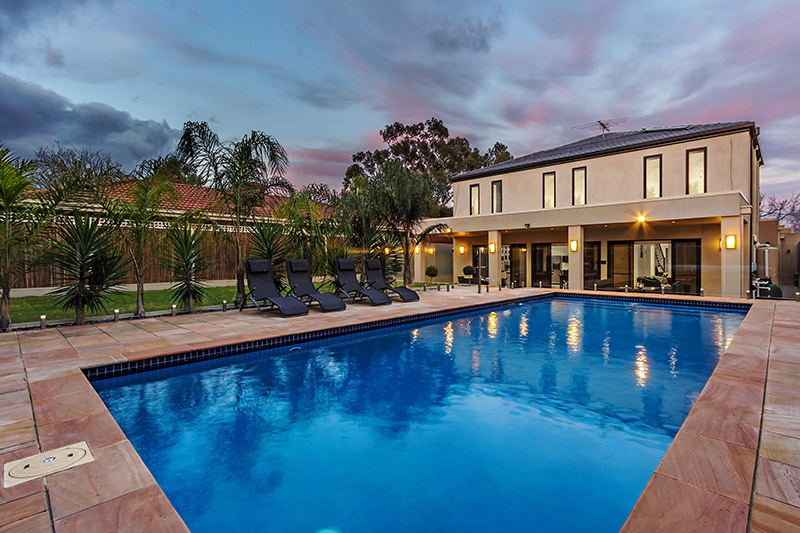 Together with a maintenance-free rock garden at front and a tropical hideaway amongst palm trees and manicured gardens at rear. The large undercover alfresco entertainment area overlooks a generous size solar heated in-ground pool, set within clear glass panels amongst a large sandstone tiled surround.