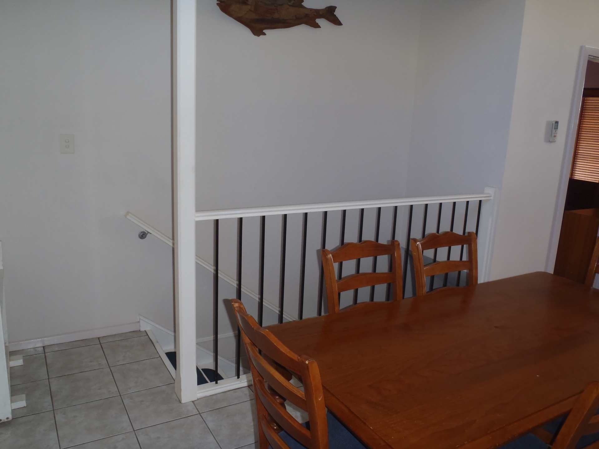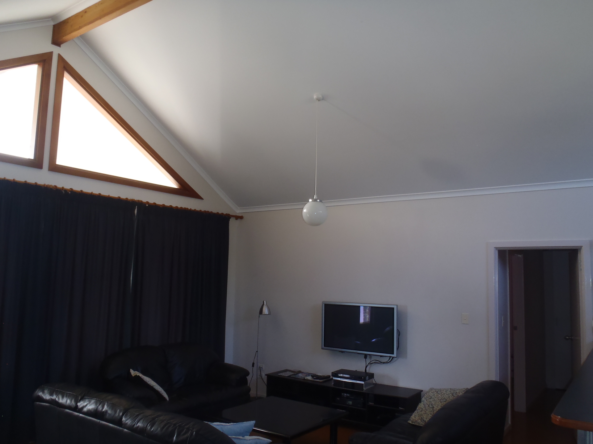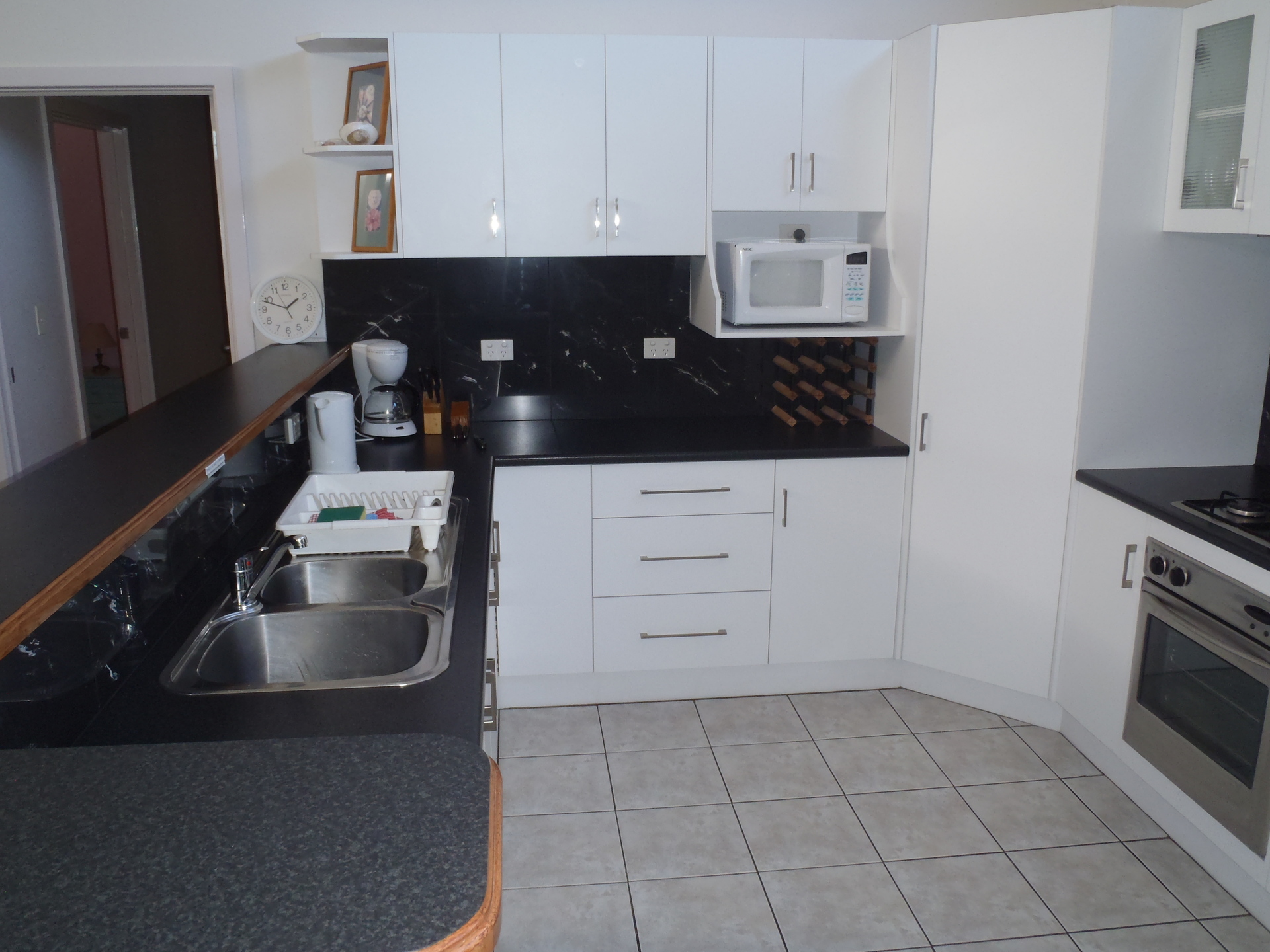 Connecting internally from the ground floor is a staircase which leads into the main open plan living area. High raked ceilings in this area with gable window sky lights on both sides of the room create a stunning ambience. The living area includes a modern kitchen with plenty of cupboard space, a dining area and a lounge/TV area. A large RC air conditioning unit provides ample cool or warm air to make the entire house comfortable.