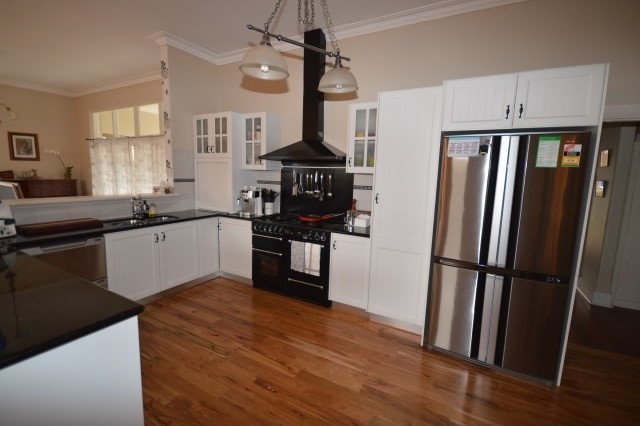 The chef's kitchen boasts beautiful granite bench tops with plenty of workspace and custom fitted cabinetry providing more than enough storage. Additional features include a Falcon five burner gas cook top with dual gas oven and a Fisher & Paykel dish drawer dishwasher.