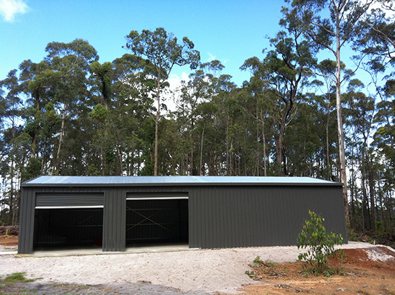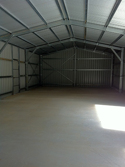 * New 16m x 7m double roller door colourbond shed with concrete floor