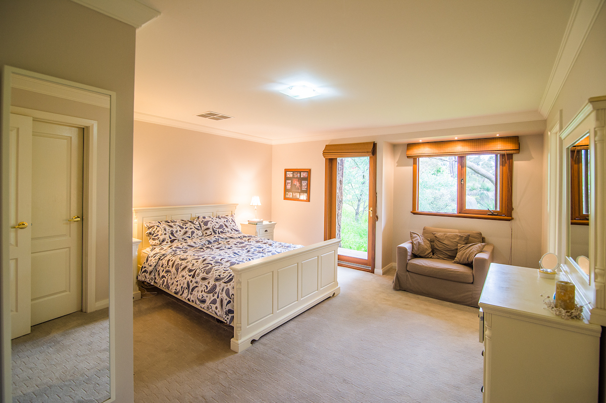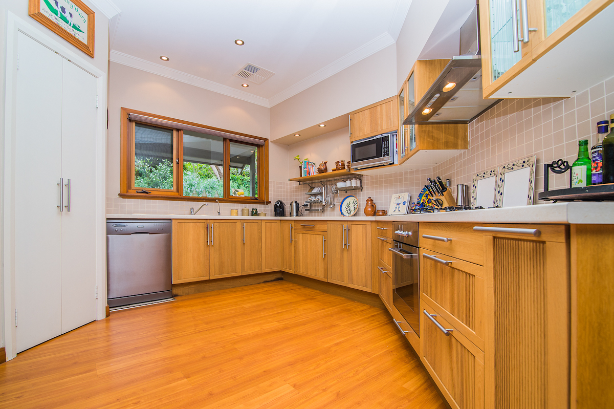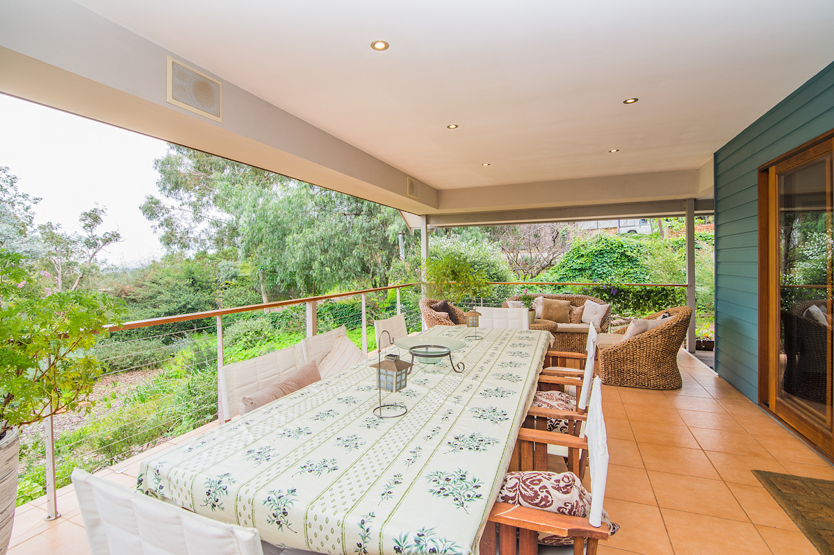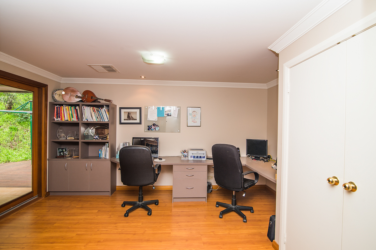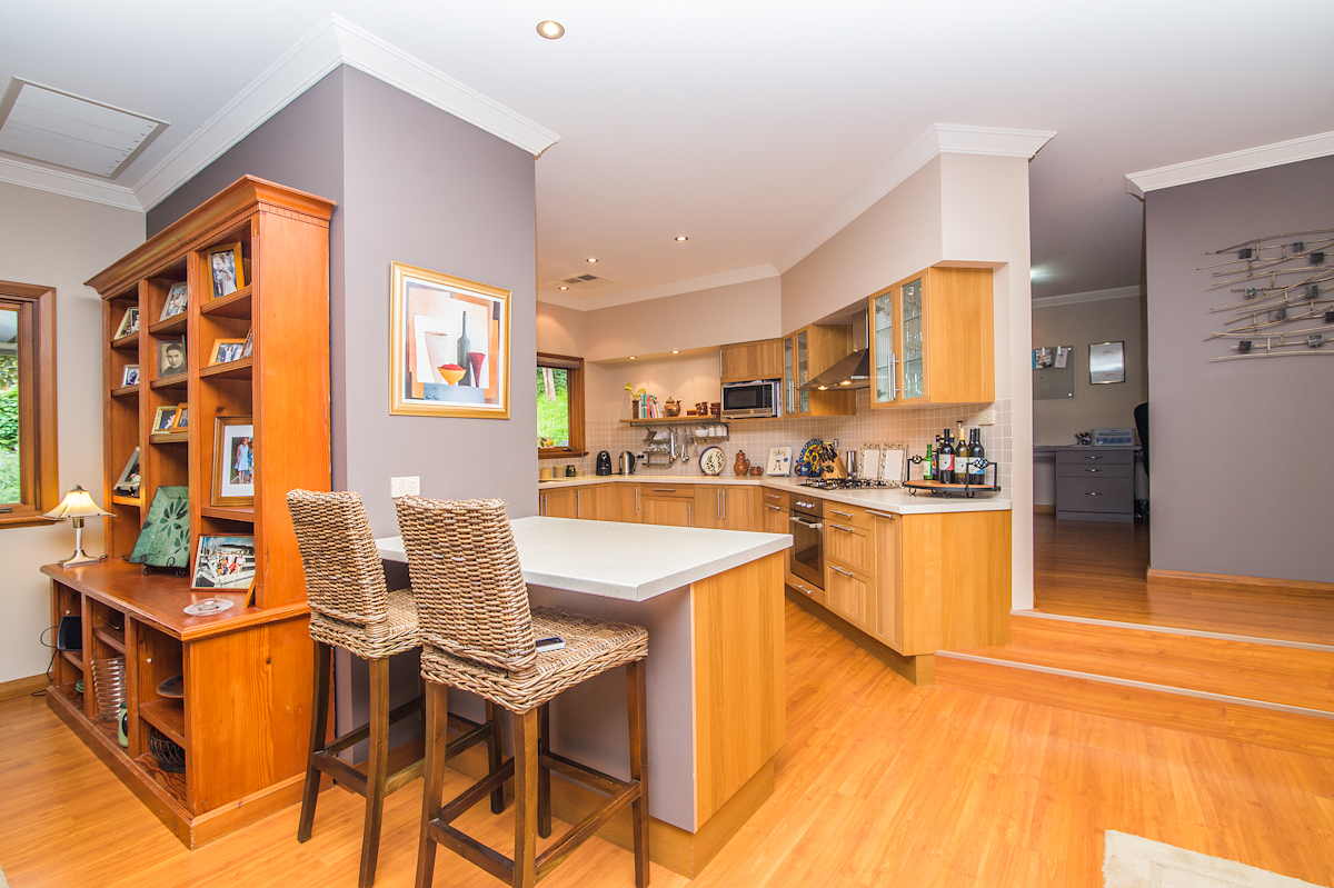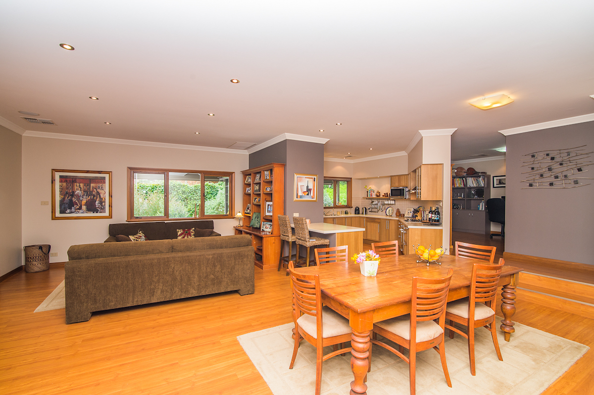The home has a Modern Australian character, with Stegbar cedar doors and windows providing a relaxing outlook of the lovely grounds, and large, tiled verandahs, making the home very easy to keep cool in summer. Entertain family and friends on the large terrace, where you can see glimpses of Perth’s city lights, overlooking the beautiful landscaped, reticulated native gardens.