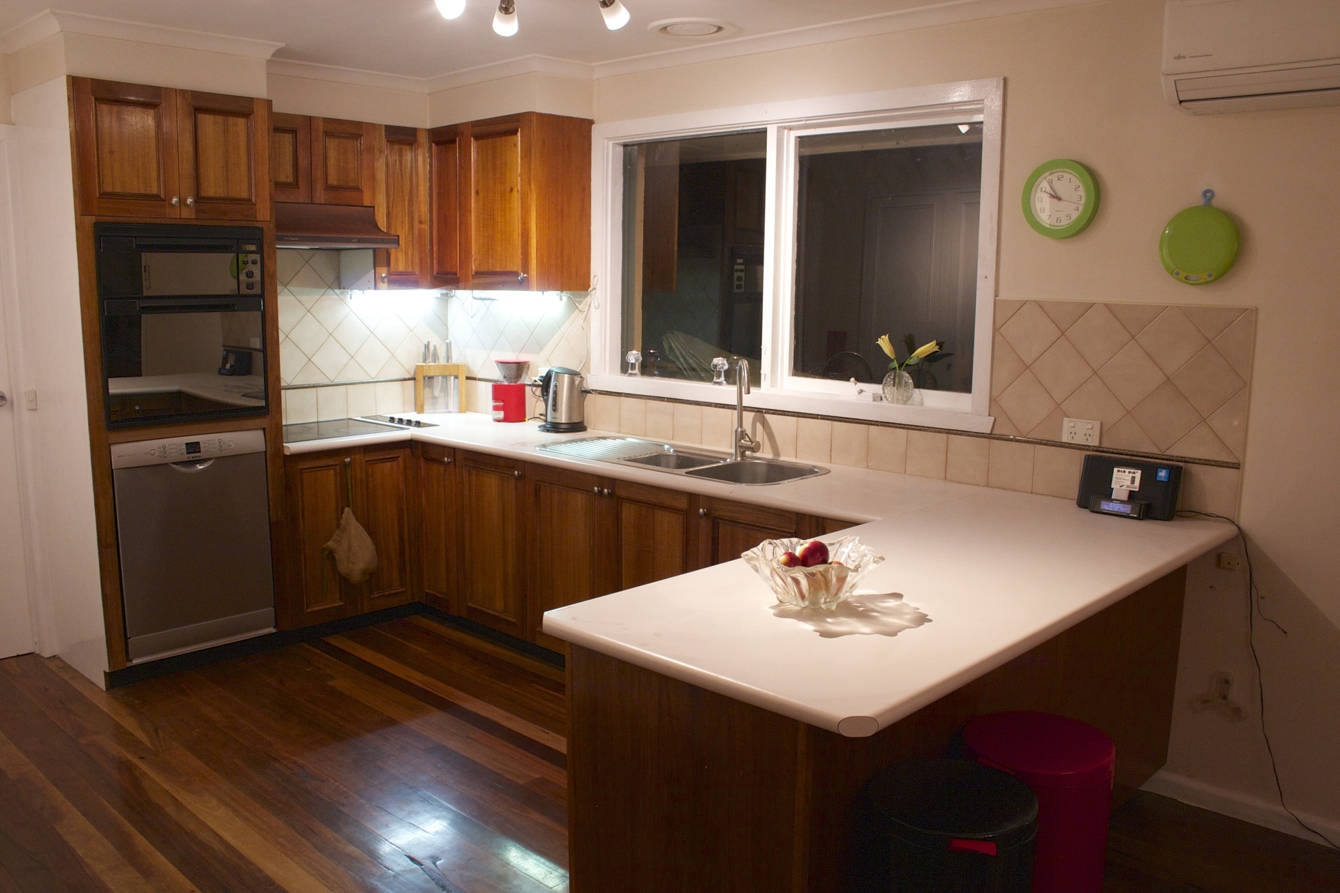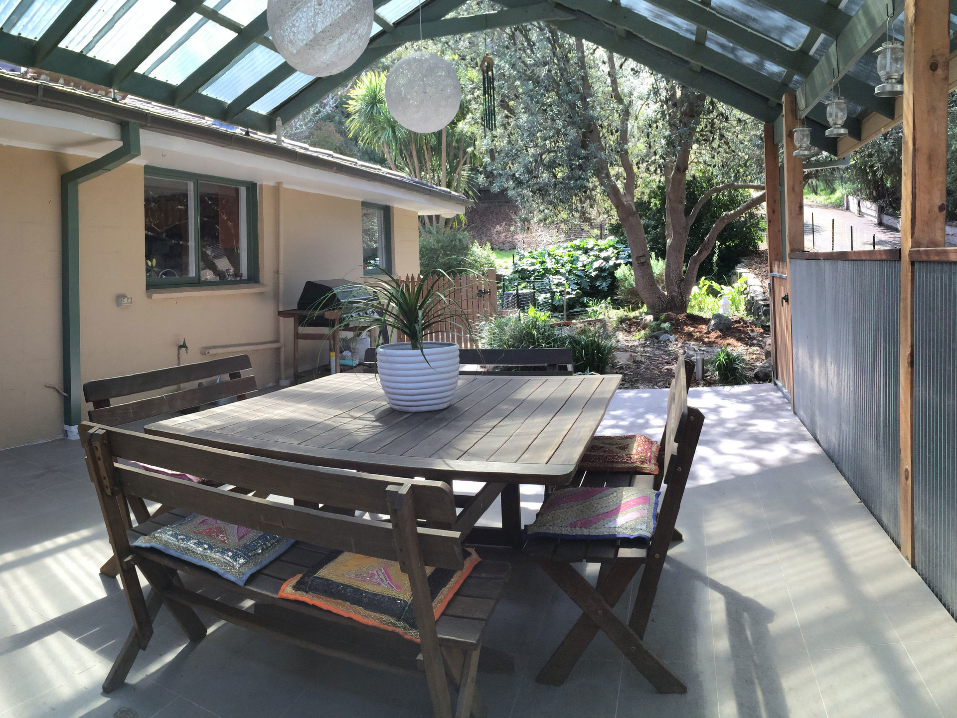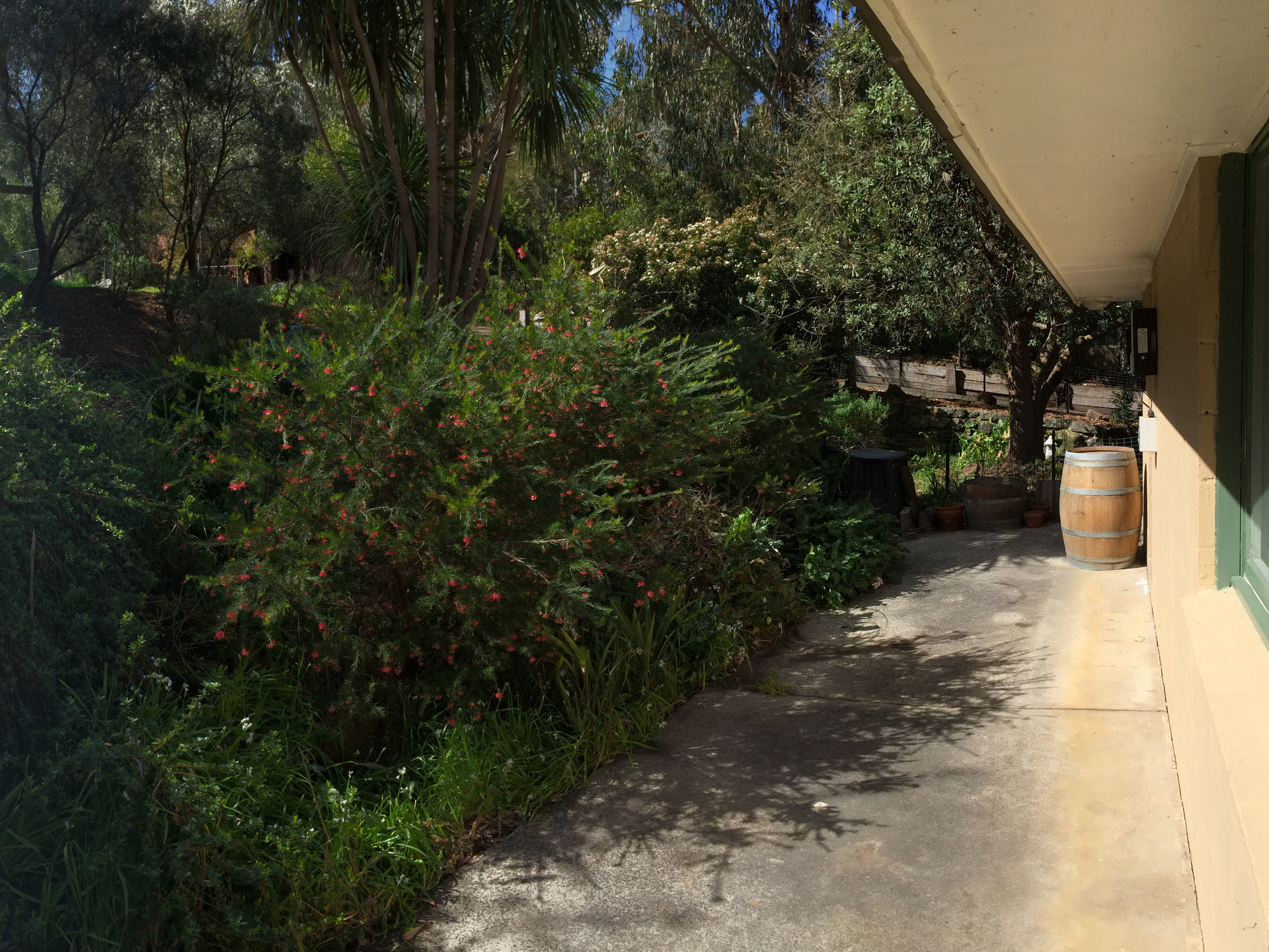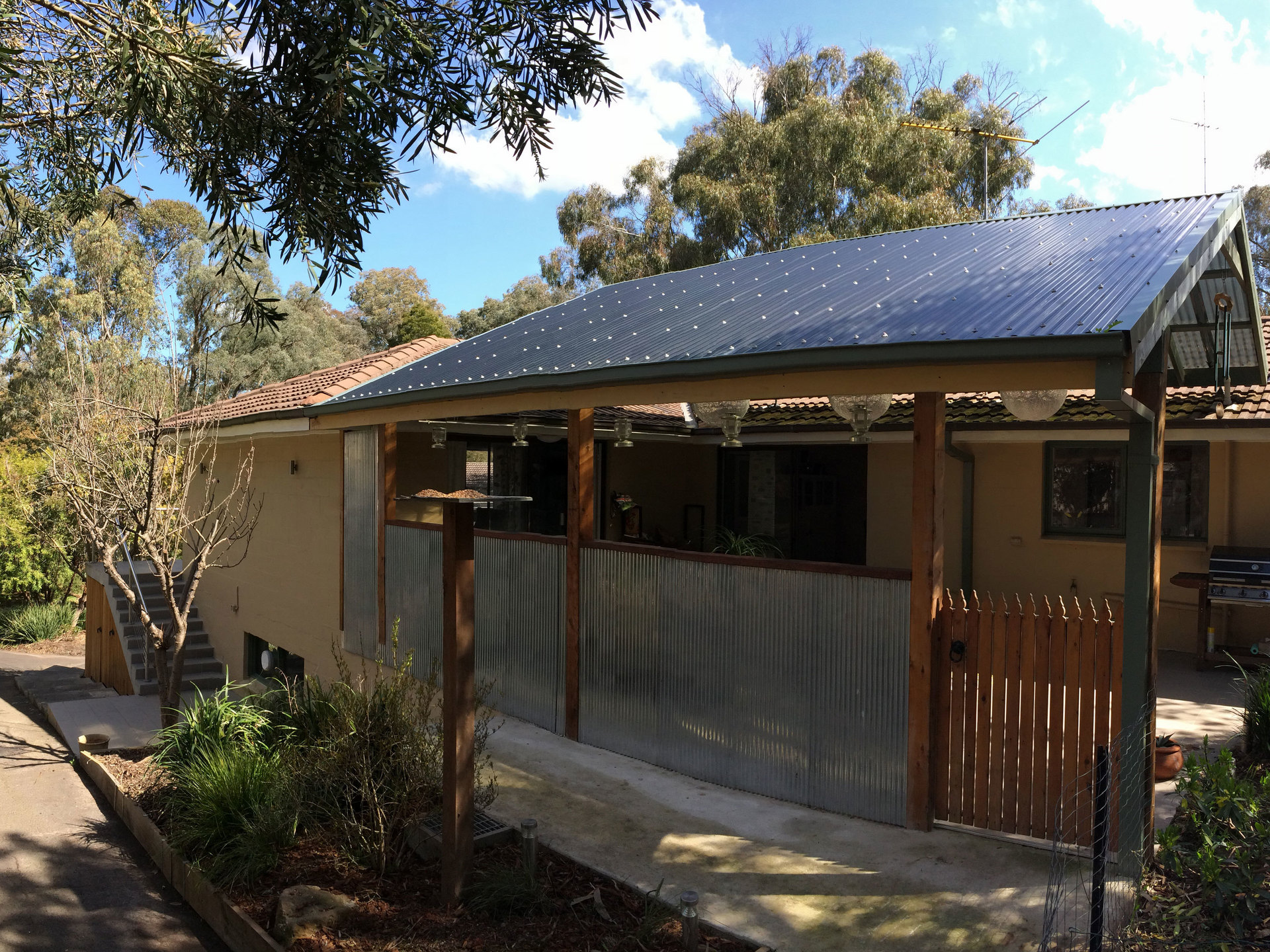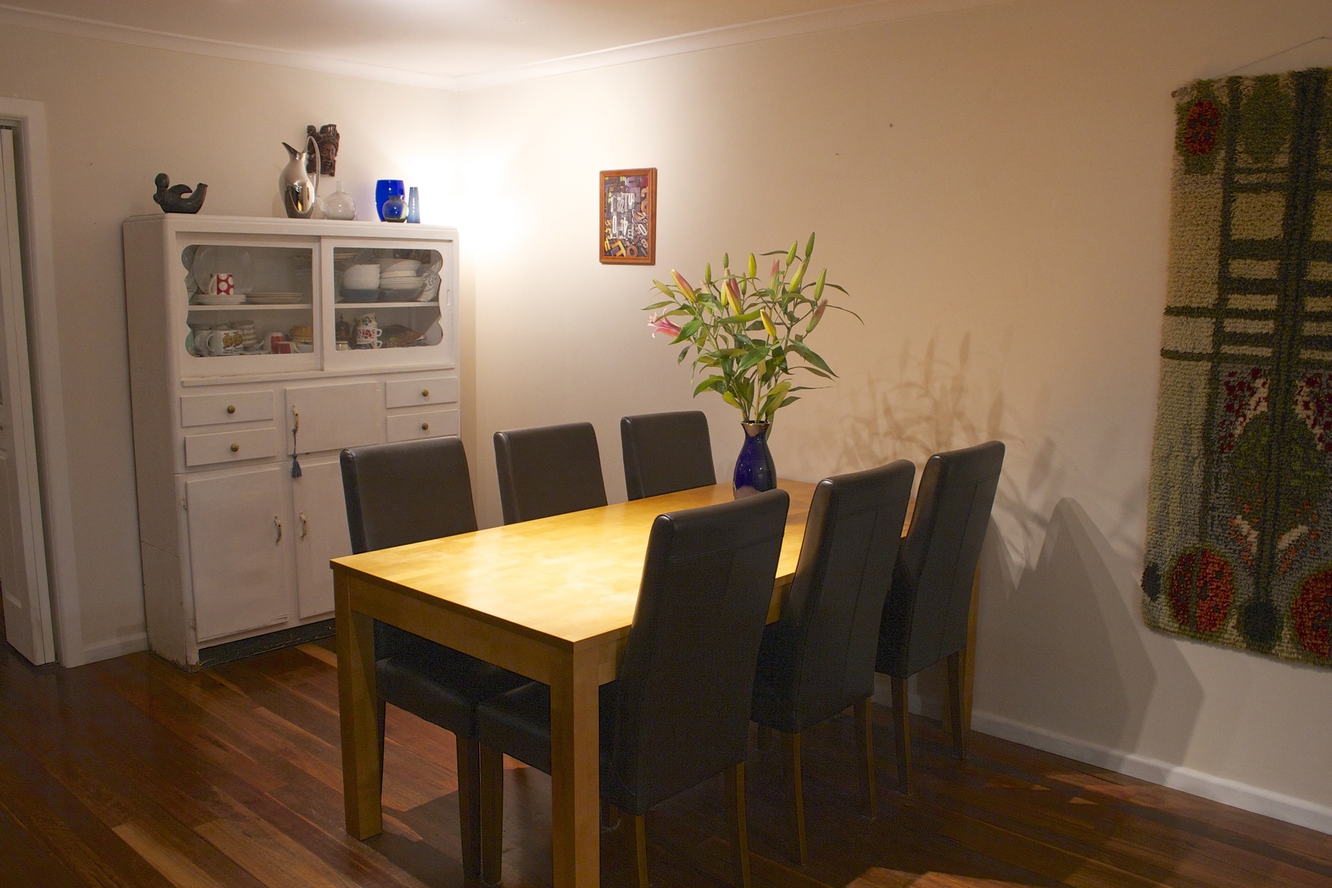 The living room, dining room and kitchen are all open plan with sliding doors from the living as well as the dining room leading out into the huge 35m2 tiled entertainment area encompassed by a native garden,fruit trees and veggie patch. It is currently fenced to suit a small dogs, there is a doggie door in one of the sliding doors. The bird feeder provides plenty of entertainment throughout the year displaying lots of different parrots at feeding time.