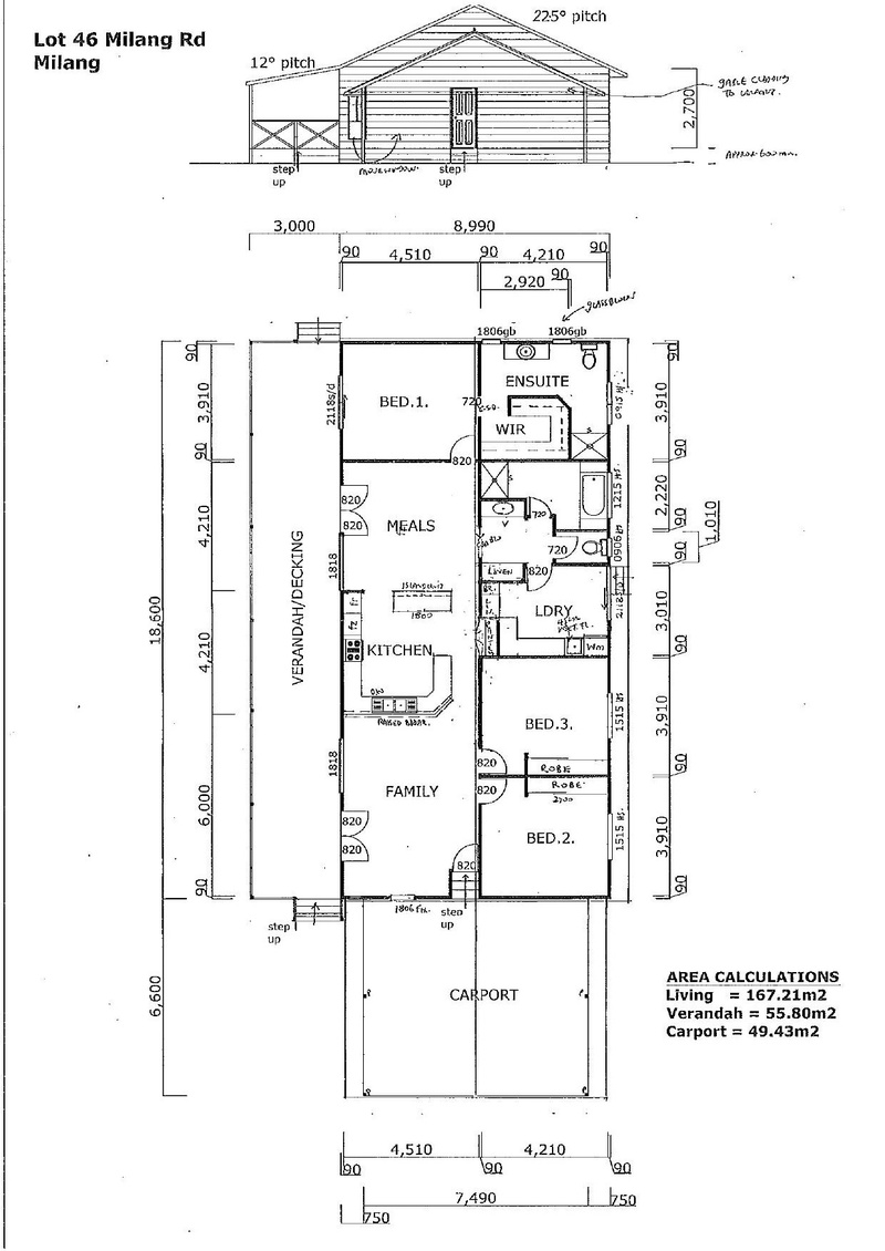 A carport under the main roof can easily accommodate 6 cars with direct access to the front door under cover.
