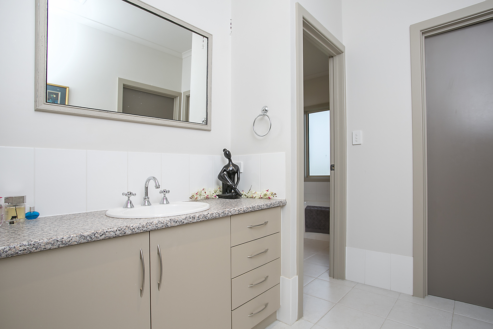 The huge main bedroom has quality block-out curtains and deep pile carpet and easily fits a Super King size bed. The stunning ensuite bathroom will delight and an adjacent walk-in-robe is large enough to accommodate any shop-a-holic.