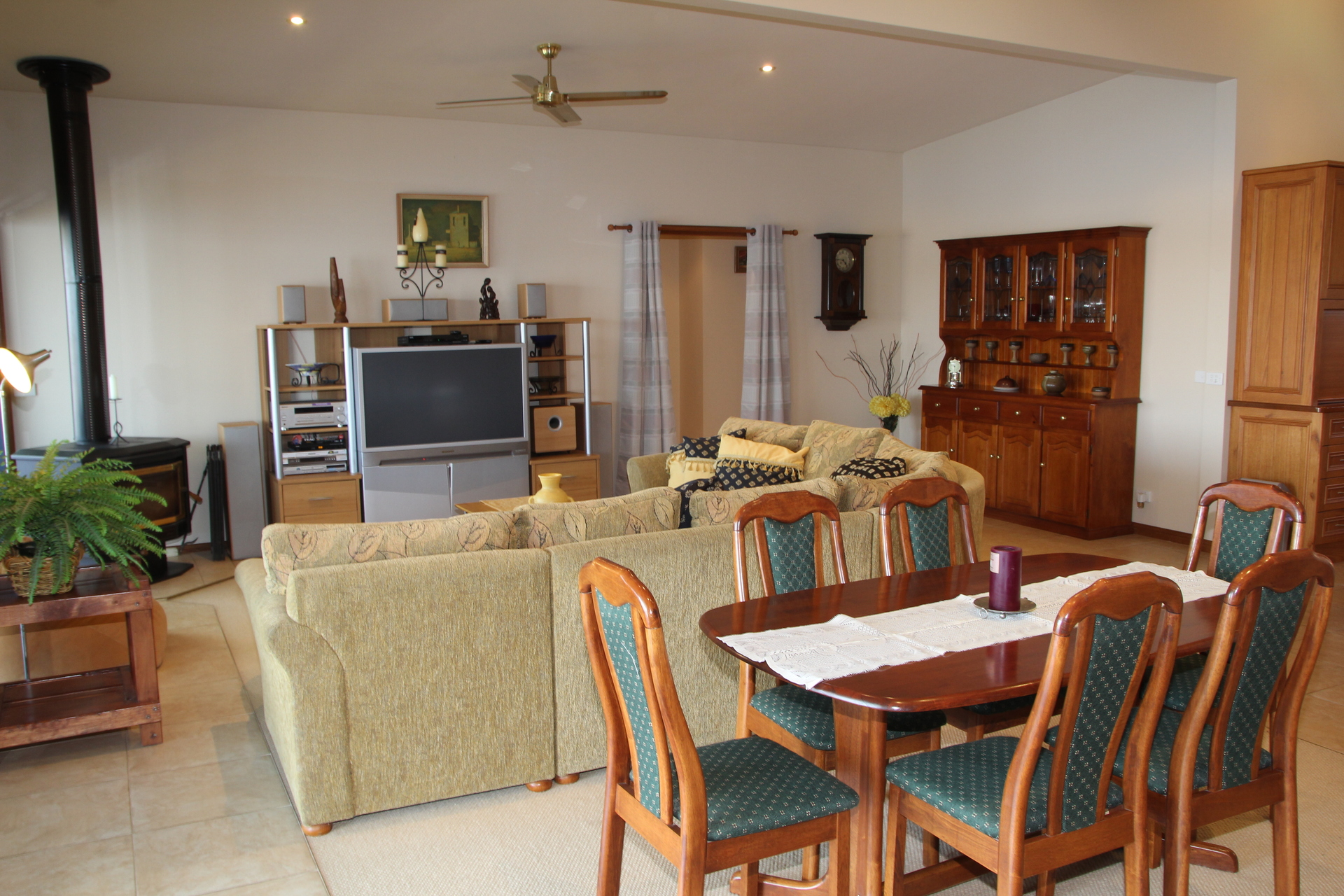 Large open plan lounge / dining room overlooking 180 degree views of Lake Glenmaggie.