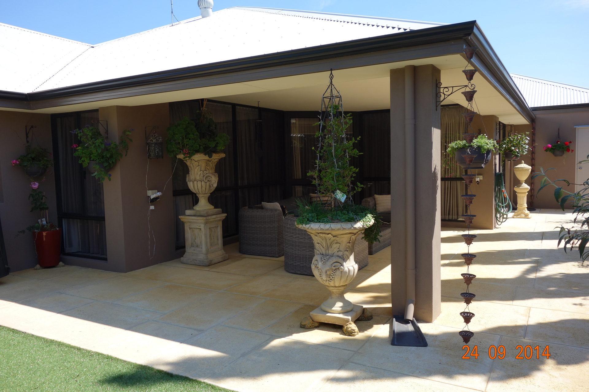 Fantastic floor to ceiling windows lead-out to a great outdoor alfresco entertaining area with beautiful low-maintenance landscaped reticulated gardens, and a fantastic wisteria and jasmine covered gazebo, calming water features and large flowered Mediterranean urns. All front and rear gardens serviced with automatic control irrigation and a 2500 litre water tank with electric pump (pump can also service both indoor toilets). Extra exterior hose lines - front and rear yards with two rear-yard side access gates are also included in this well featured home. Ambient outdoor lighting - front and rear yards - with lighted retaining walls, and security flood lights.