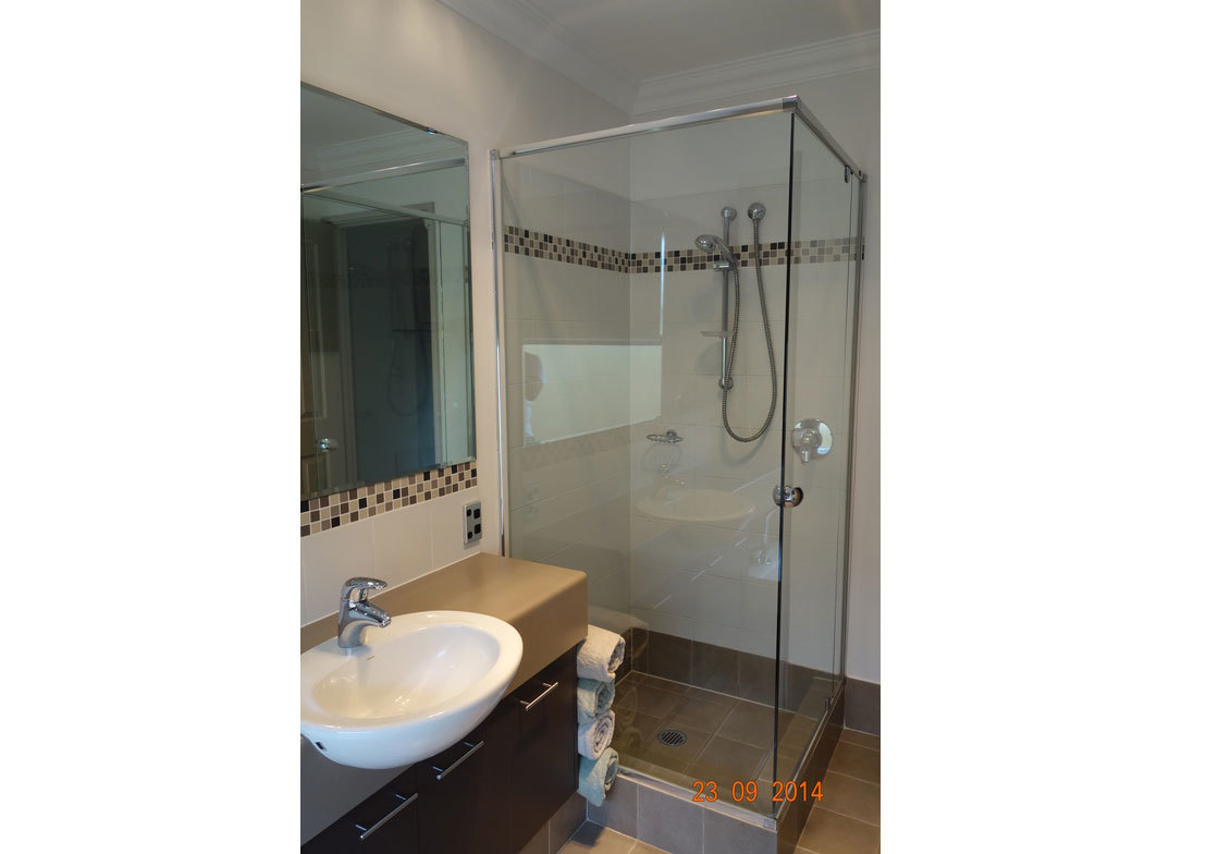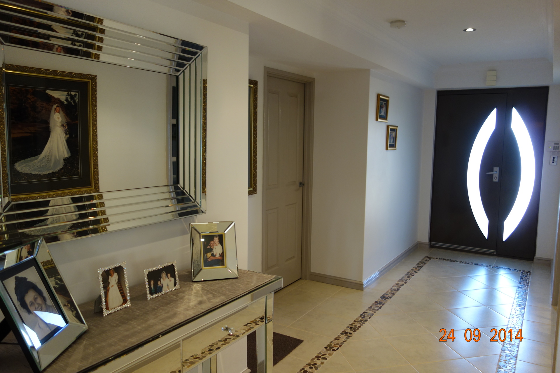 Entire home upgraded with an alarm system, interior and exterior down lights with dimmer switches, chrome and glass fixtures, an off-the-floor custom entertainment unit in the large family room, solar hot-water with an indoor timed temperature control, ample storage in the laundry - including overhead cupboards - air-conditioning, and multiple exterior weatherproof double power-points (front and rear yards).
