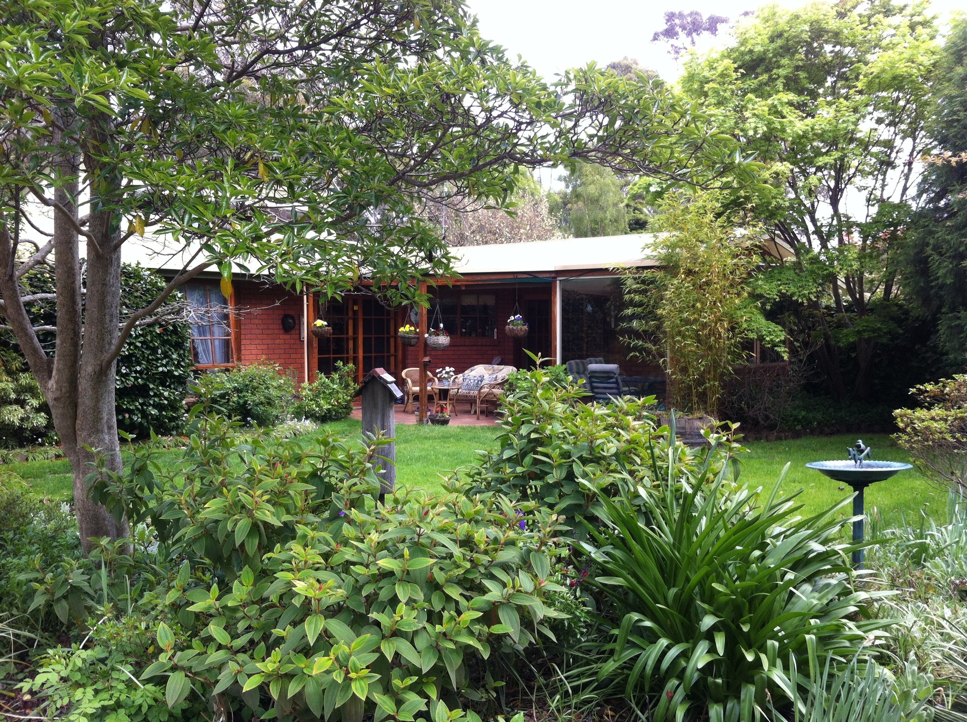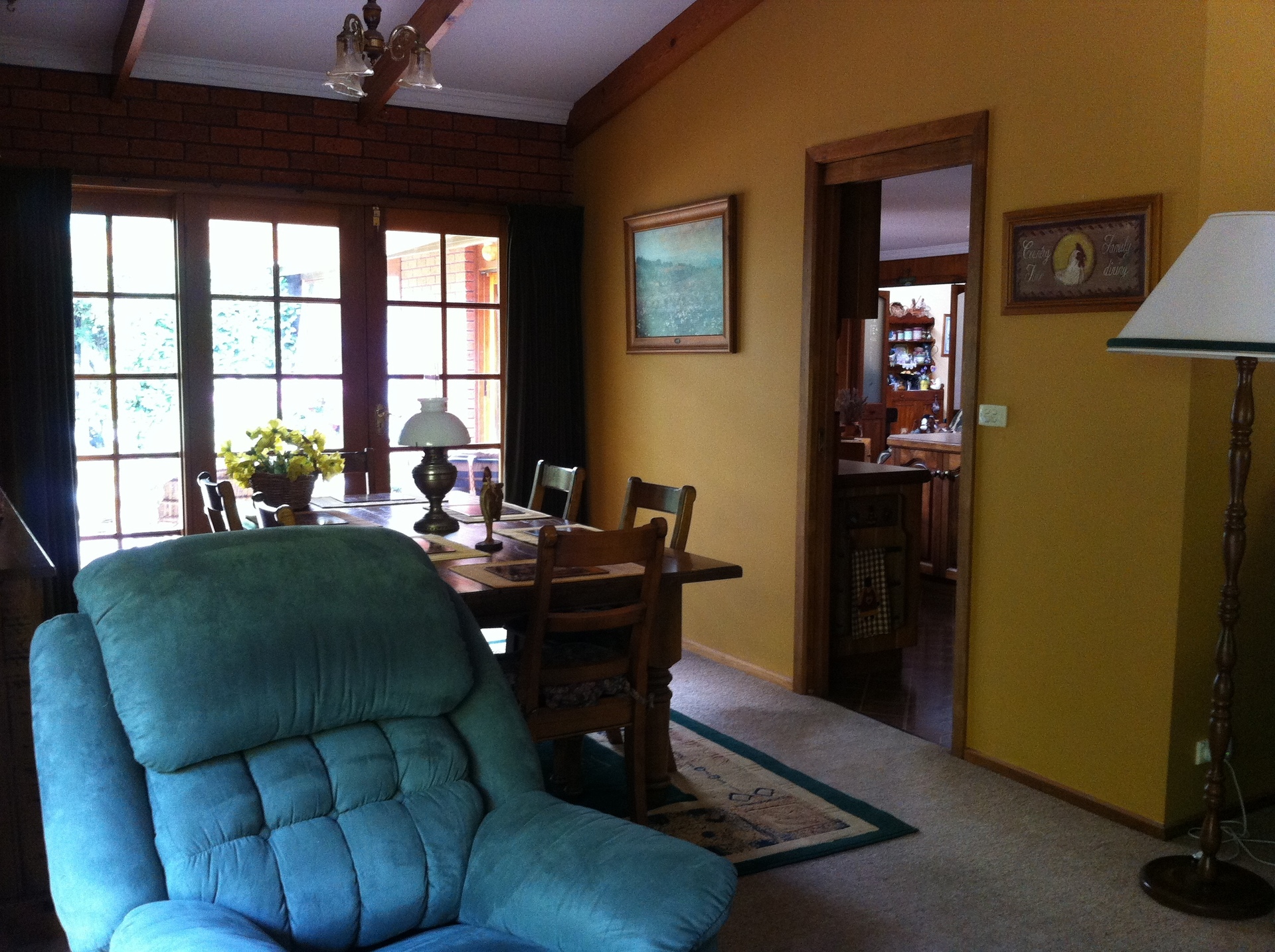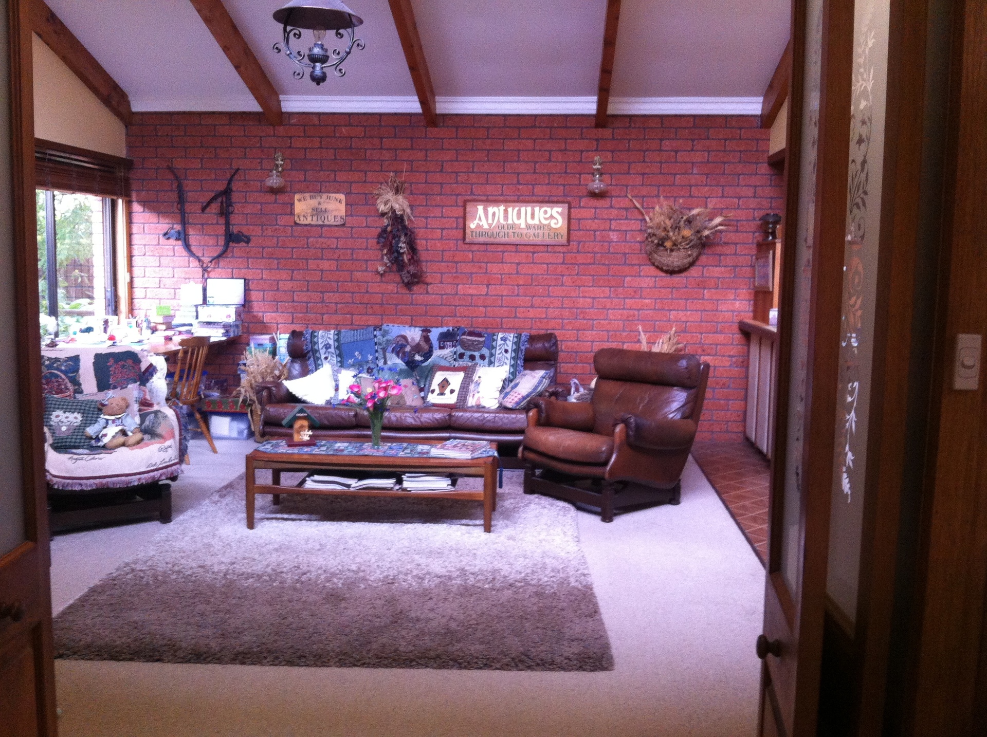 This quality brick home features brick and timber interior, bay windows and cathedral ceilings. Large windows around each side of the main living area take advantage of the peaceful outlook, while French doors flow from the adjacent dining area to an undercover bbq and entertaining area. A large kitchen with breakfast bar flows through to a second living area which includes another wood heater in addition to that in the main living area. Additionally there is an expansive room equipped with bar, fridge cavity, sink and bench, direct access outdoors and to bathroom/toilet for entertaining/rumpus or independent living quarters for family.