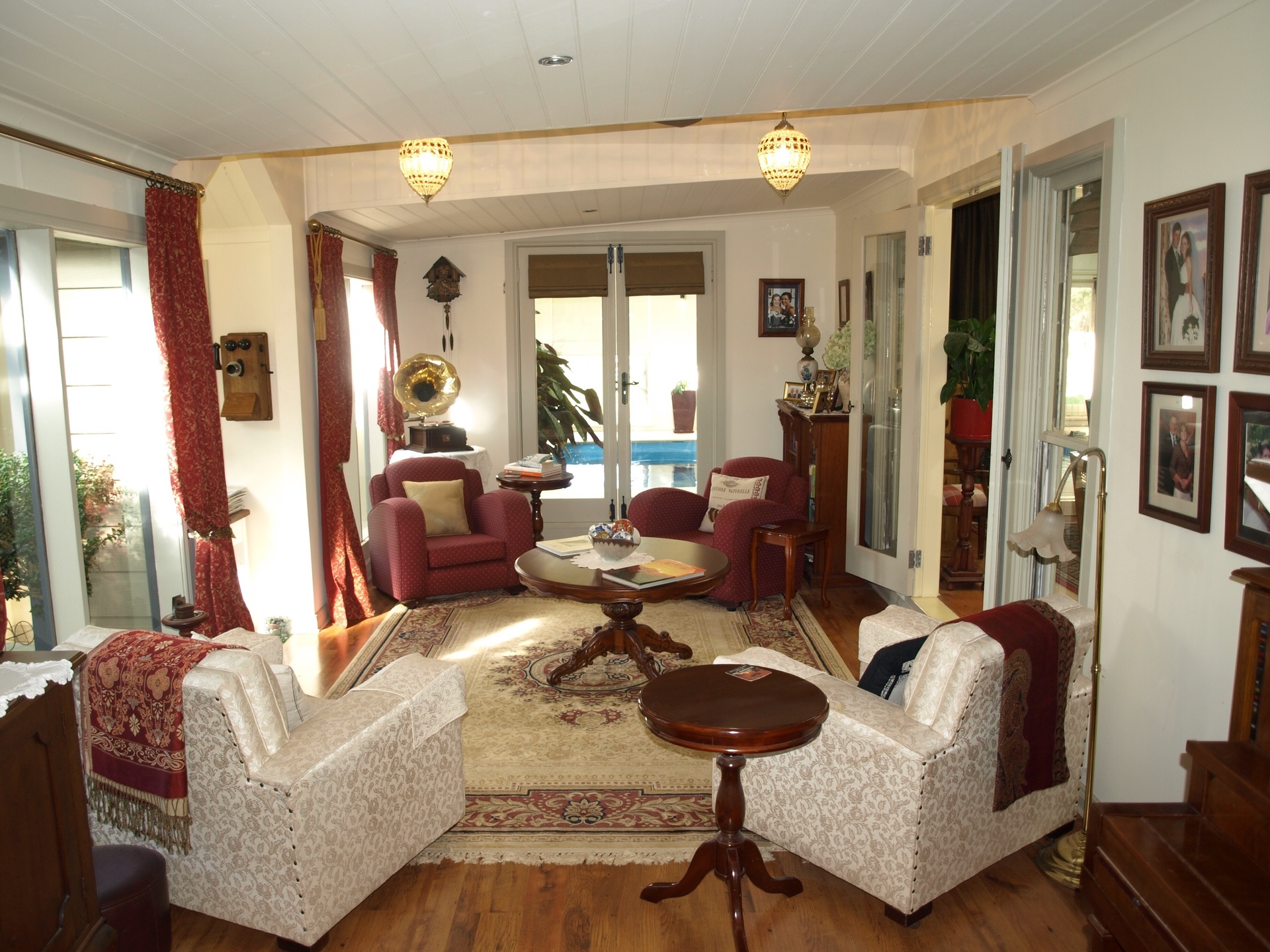 In the main house there are 3 bedrooms and 3 bathrooms, comprising 2 ensuites and 2 spa baths. A 4th bedroom/study is upstairs in the attic. For extra visitors there is a studio cottage complete with ensuite. Cottage also ideal for home based business with NBN Internet connection.