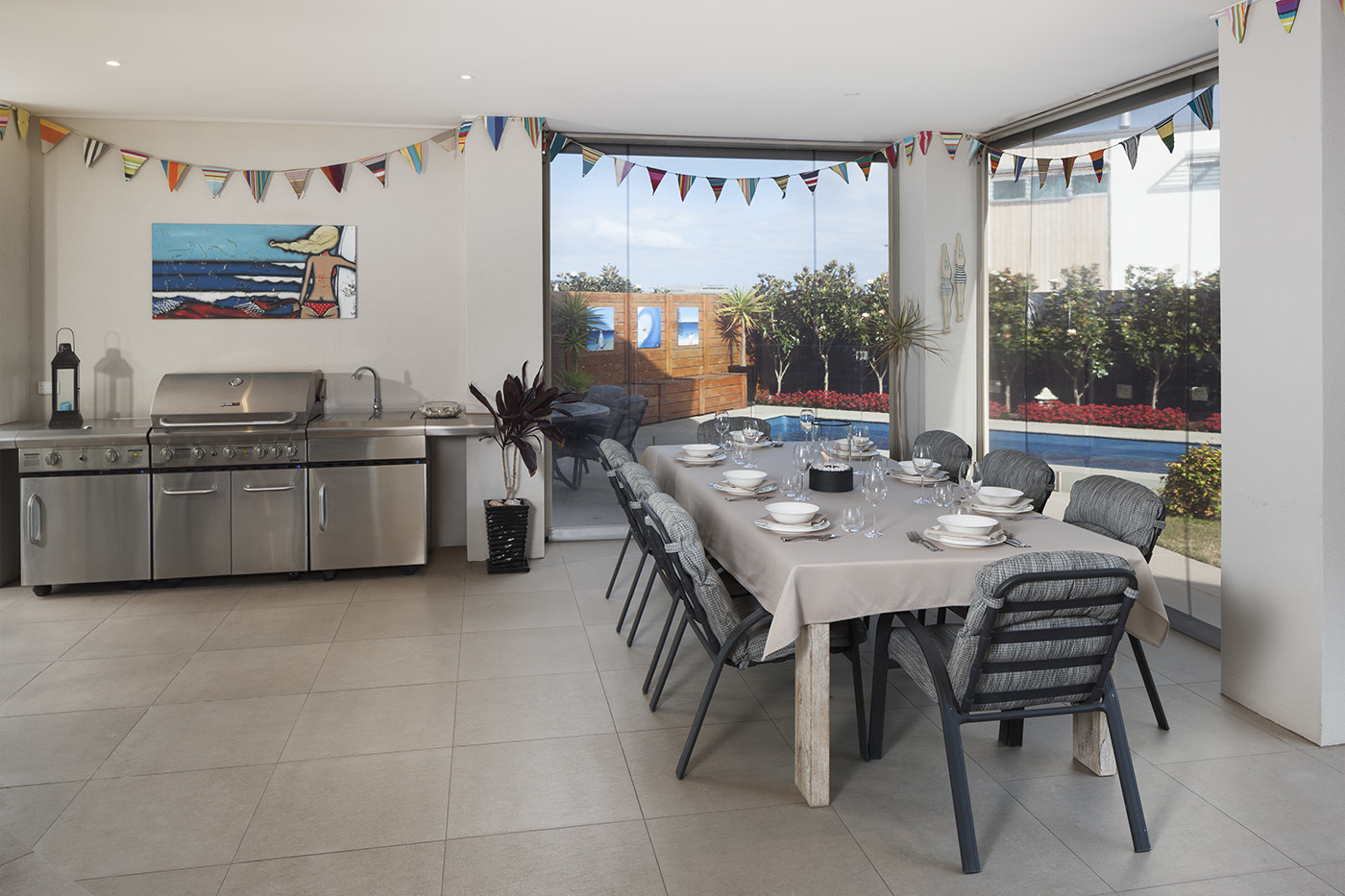 If you love to entertain outdoors, you will be spoilt for choice with three sensational alfresco areas (two poolside, one with water views and one with a large built-in barbeque). Two of the alfresco areas are surrounded by heavy duty clear blinds that allow weatherproof alfresco living all year round.