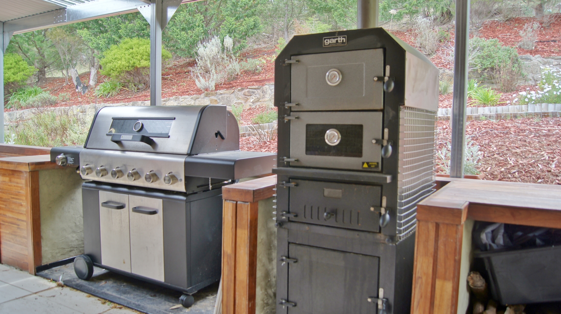 Outside there is a large covered veranda on three sides with wonderful views, at the rear is a spacious covered entertaining area with plenty of seating and tables, six burner BBQ and wood fired Pizza oven.