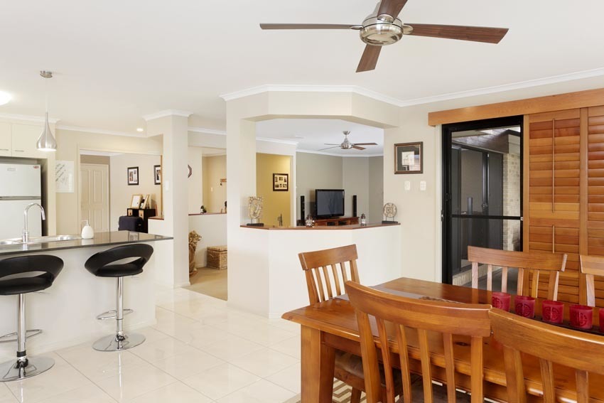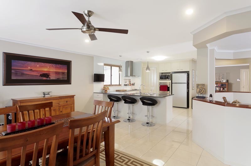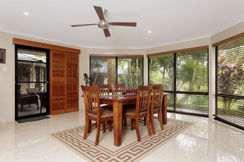 The house has 4 spacious bedrooms, with the main having its own private wing consisting of an en suite, walk in wardrobe and beautiful floor to ceiling bay windows which give you fantastic views overlooking the golf course. There are ceiling fans in each room and a DUCTED air conditioning system through the home.