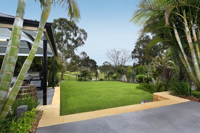 Beautiful home perfectly positioned on the 1st Tee of the Branxton Golf Course. Situated just 2 minutes from the new Hunter Expressway, this stylishly appointed as new 4 bedroom home sits on 966sqm of manicured lawns, which are fully equipped with automatic sprinkler systems. The stunning resort style landscaped gardens, 2 Alfresco areas and double gated rear access to the Golf Course make this property a must have. Just open the gate and drive your golf cart to the first tee!