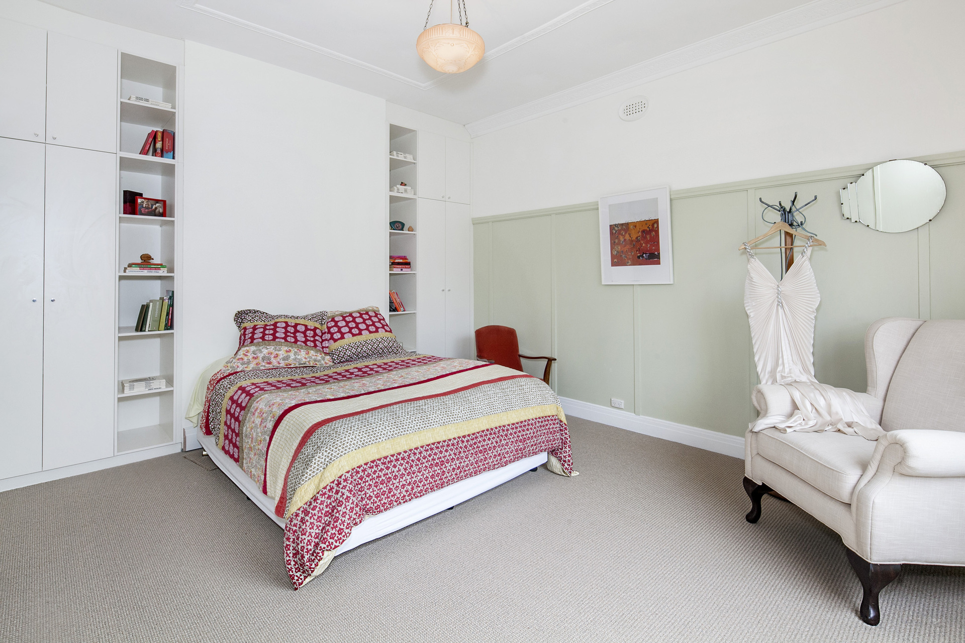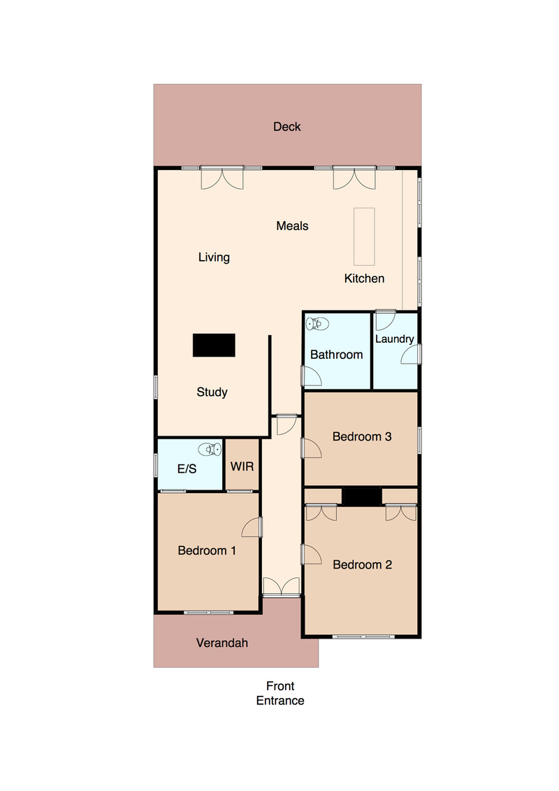 The home has three large bedrooms: the master with a walk-in robe, with lots of storage space, and a new contemporary ensuite.  Built-in robes and special shelving are a feature of the second bedroom. The main family bathroom is sky-lit and has modern shower recess and a large bath.  An added bonus is the roomy, light-filled study which is integrated with – but separate from - the main living area, sharing the double-size combustion fireplace which is installed in the original fireplace.