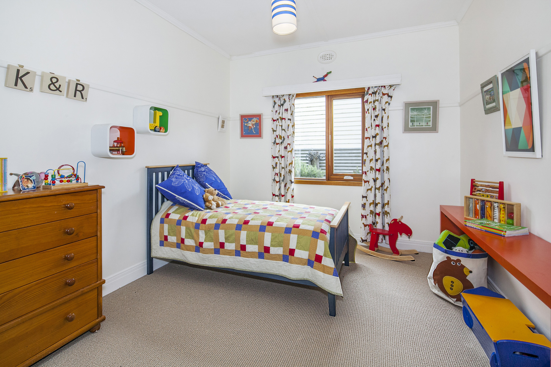 The home combines wonderful period features and stylish new layout – polished timber floors, quality wool carpets, high ceilings with classic ceiling roses and architraves. It boasts a modern, open-plan kitchen with stone bench-tops and quality appliances. The spacious dining/living area has two double French doors leading onto a covered hardwood deck, perfect for entertaining.
