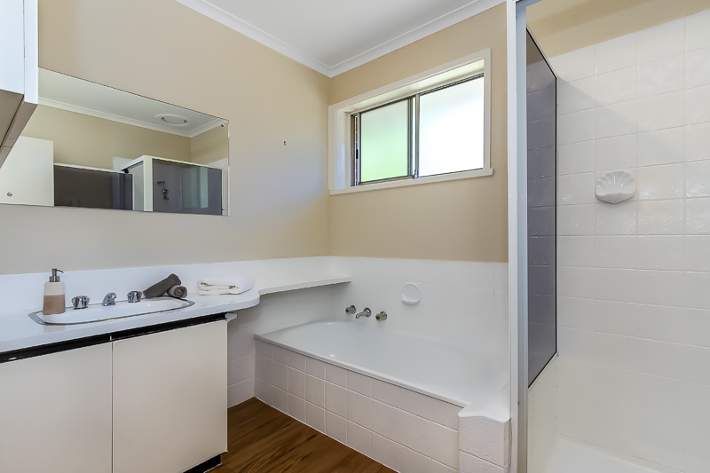 There are three (3) good sized bedrooms, two (2) with built in robes. The light and fresh bathroom has a separate shower and bath with cozy heater lights. A separate toilet is accessed from the hallway.