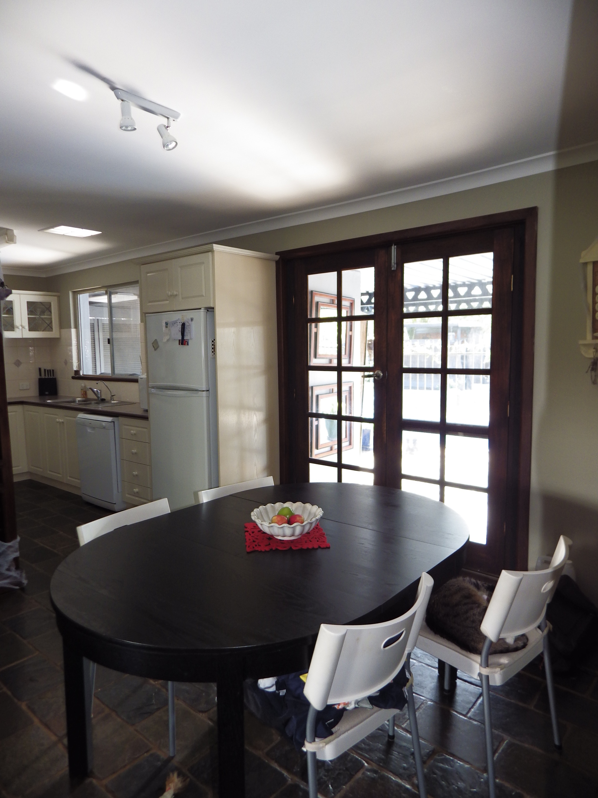 Access from C/P, French doors to patio ,slate floor.