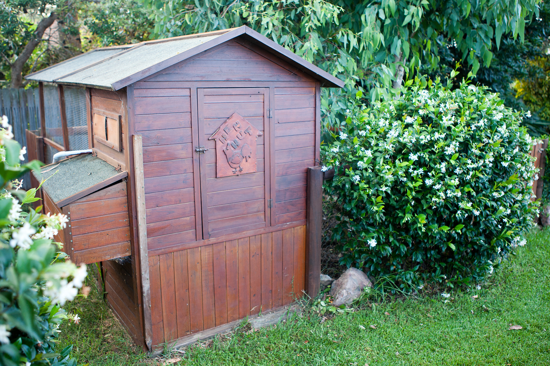 • Chicken coop and fenced run, could double as dog run